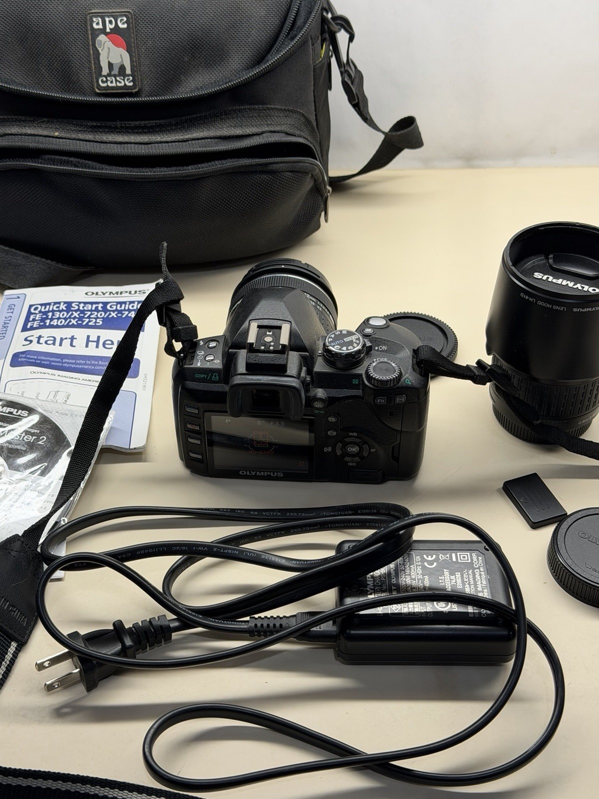 Olympus E-510 10MP DSLR w/ 14-42mm 40-150mm Lenses Battery Charger Case
