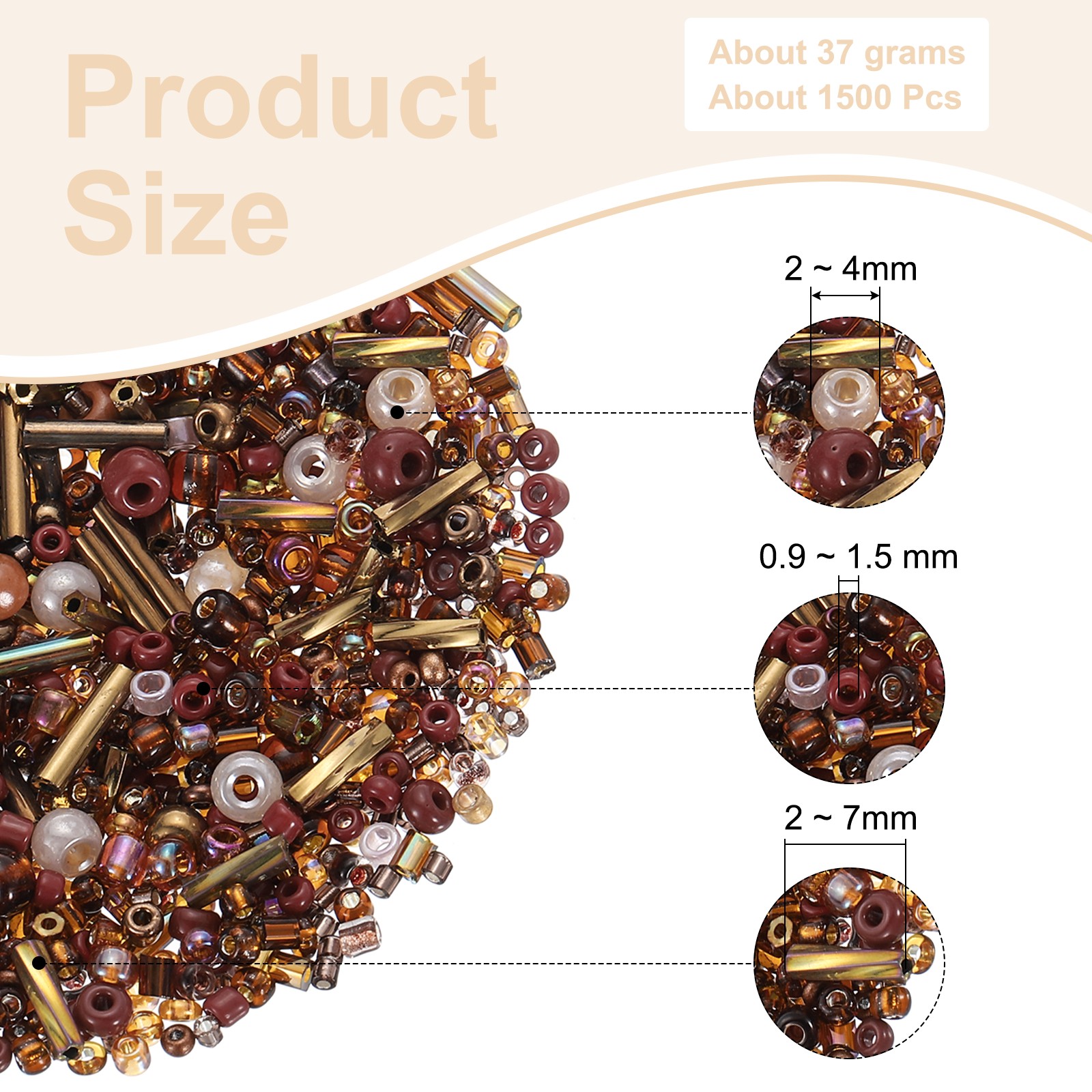 как выглядит 1500Pcs Mixed Glass Beads Seed Tube Bugle Loose Spacer Craft Beads Coffee фото