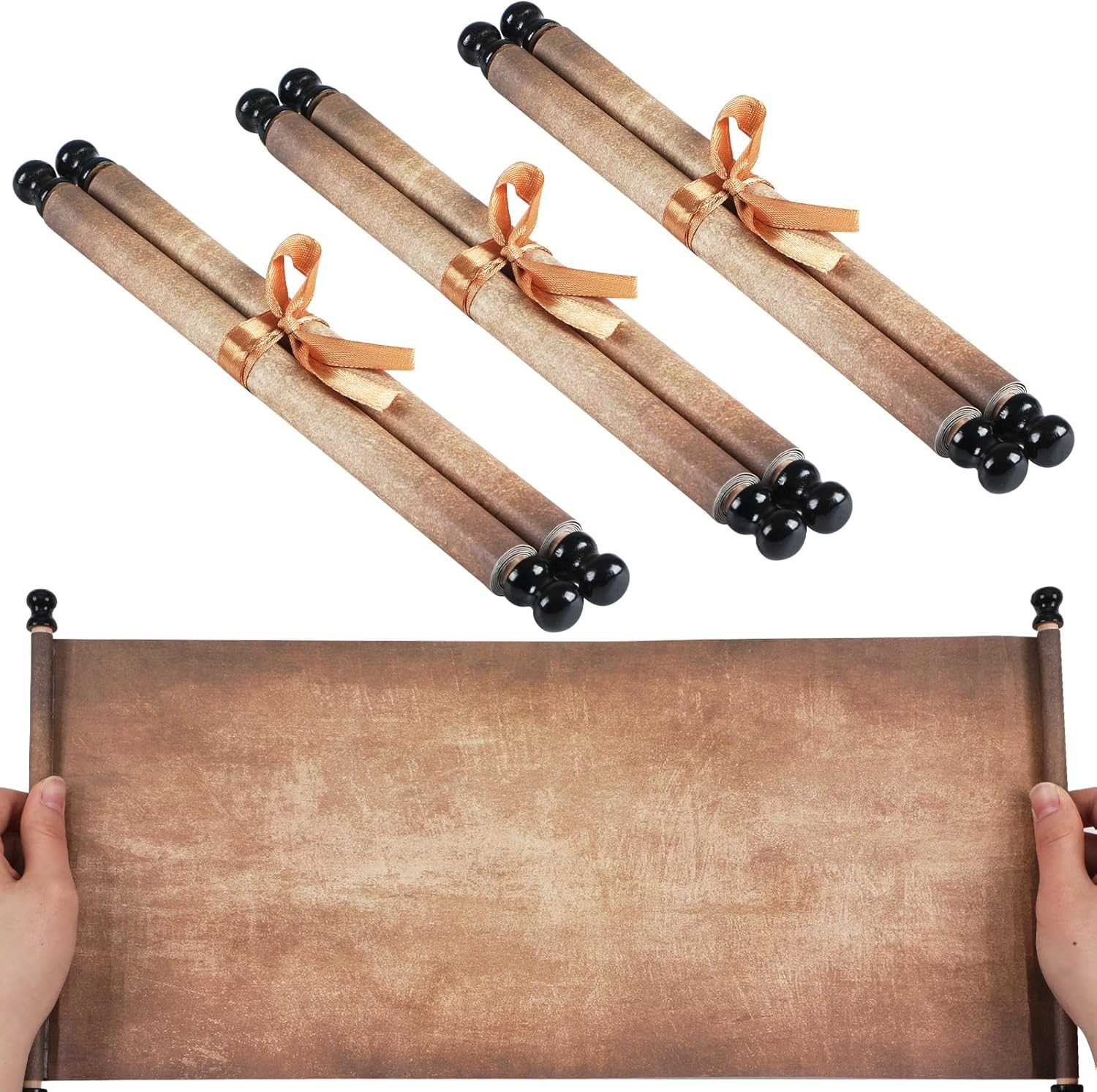 как выглядит 3Pcs Blank Scroll Paper with Wood Rods 7X15-3/4Inch Blank Old Paper Scrolls to W фото