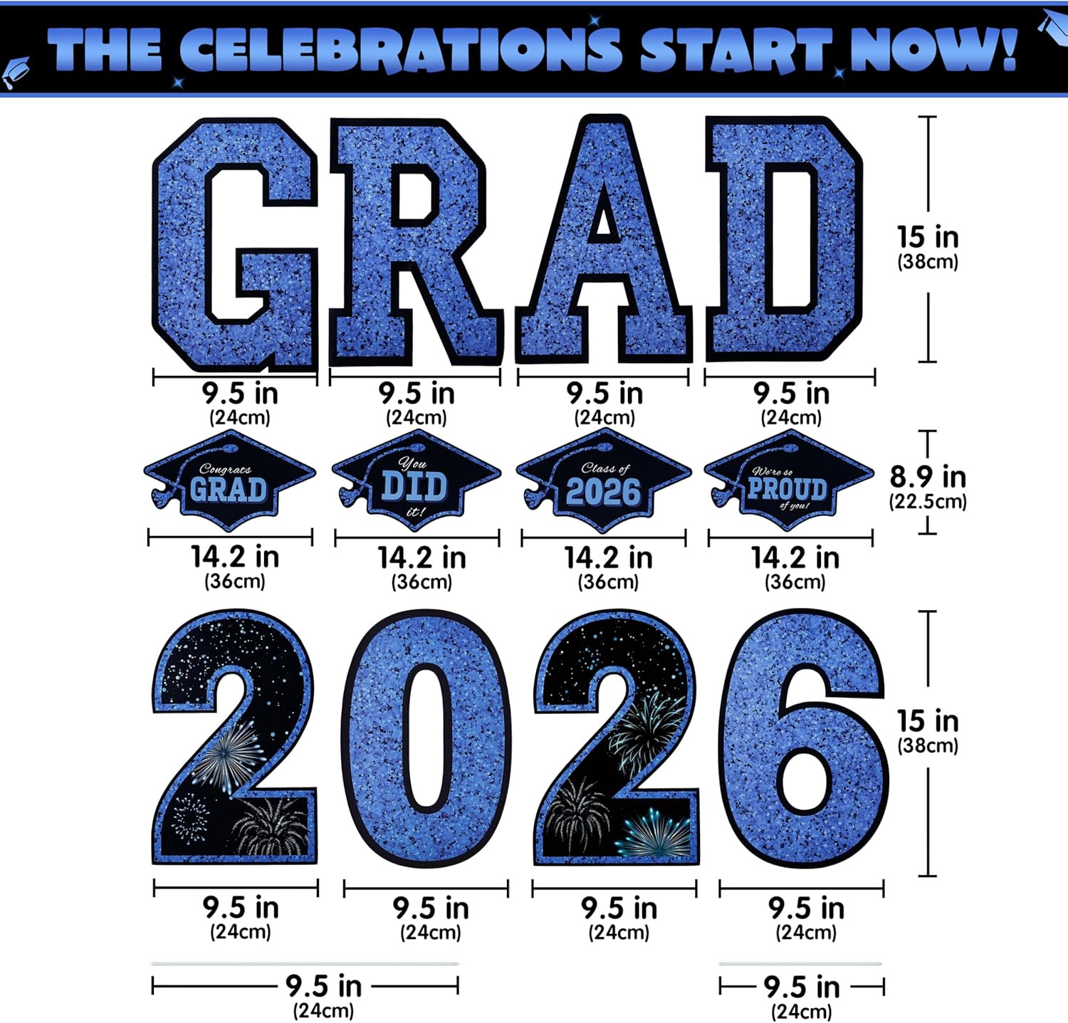 14 Pcs Graduation Yard Signs Class of 2026, Black Blue Congrats Grad Yard Sign