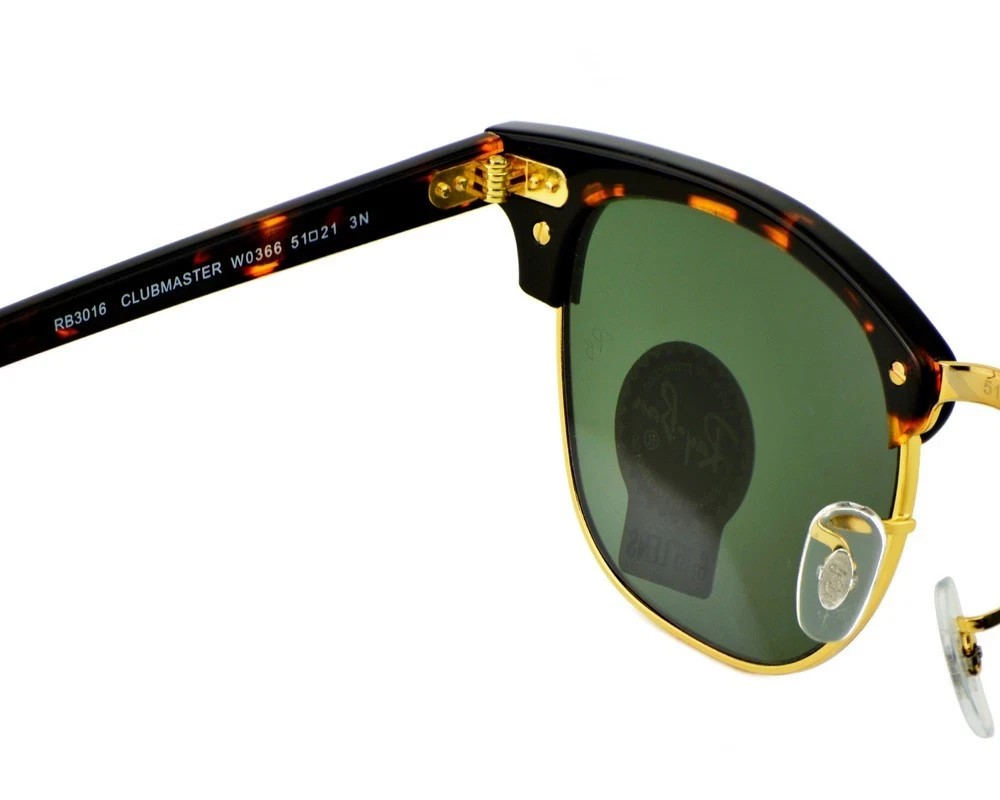 Ray-Ban Sunglasses RB3016 Clubmaster Classic Tortoise Frame Green Lenses 51mm