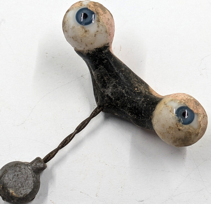 как выглядит Vintage German Antique Hand Blown Rocker Glass Doll Eyes Blue Round BBI-12 фото