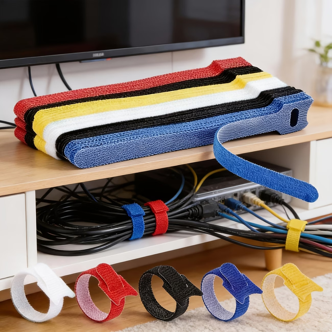 как выглядит 200Pcs Cable Straps Wire Cord Hook Loop Ties Reusable Fastening Organizer Lot фото