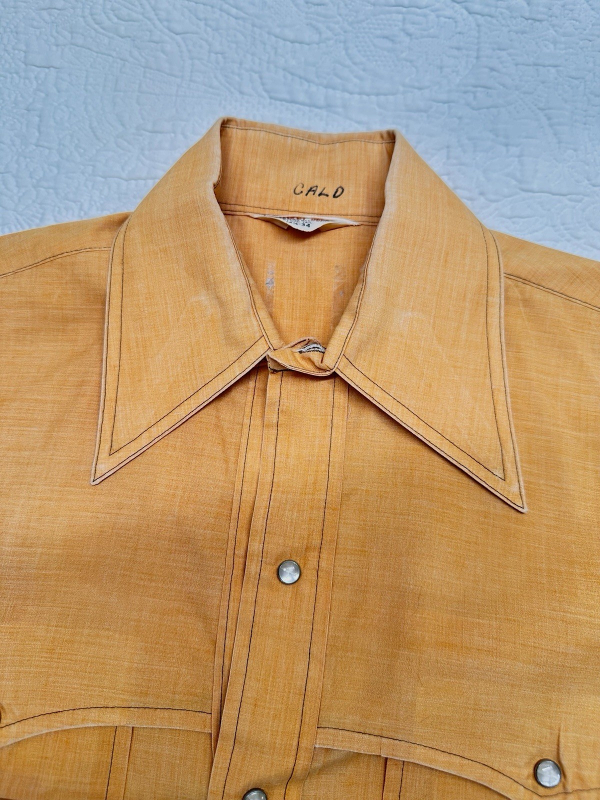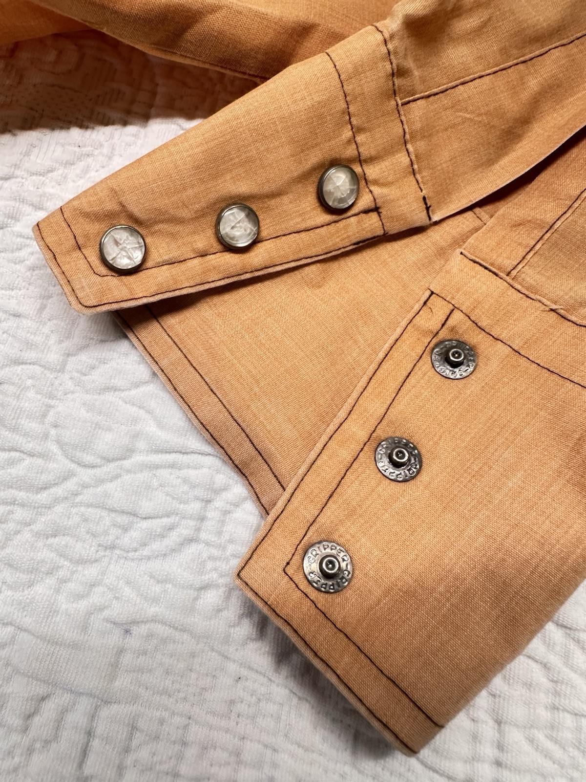 Vintage 1960s Light Orange Pearl Snap Western Shirt Long Tail 14.5x34