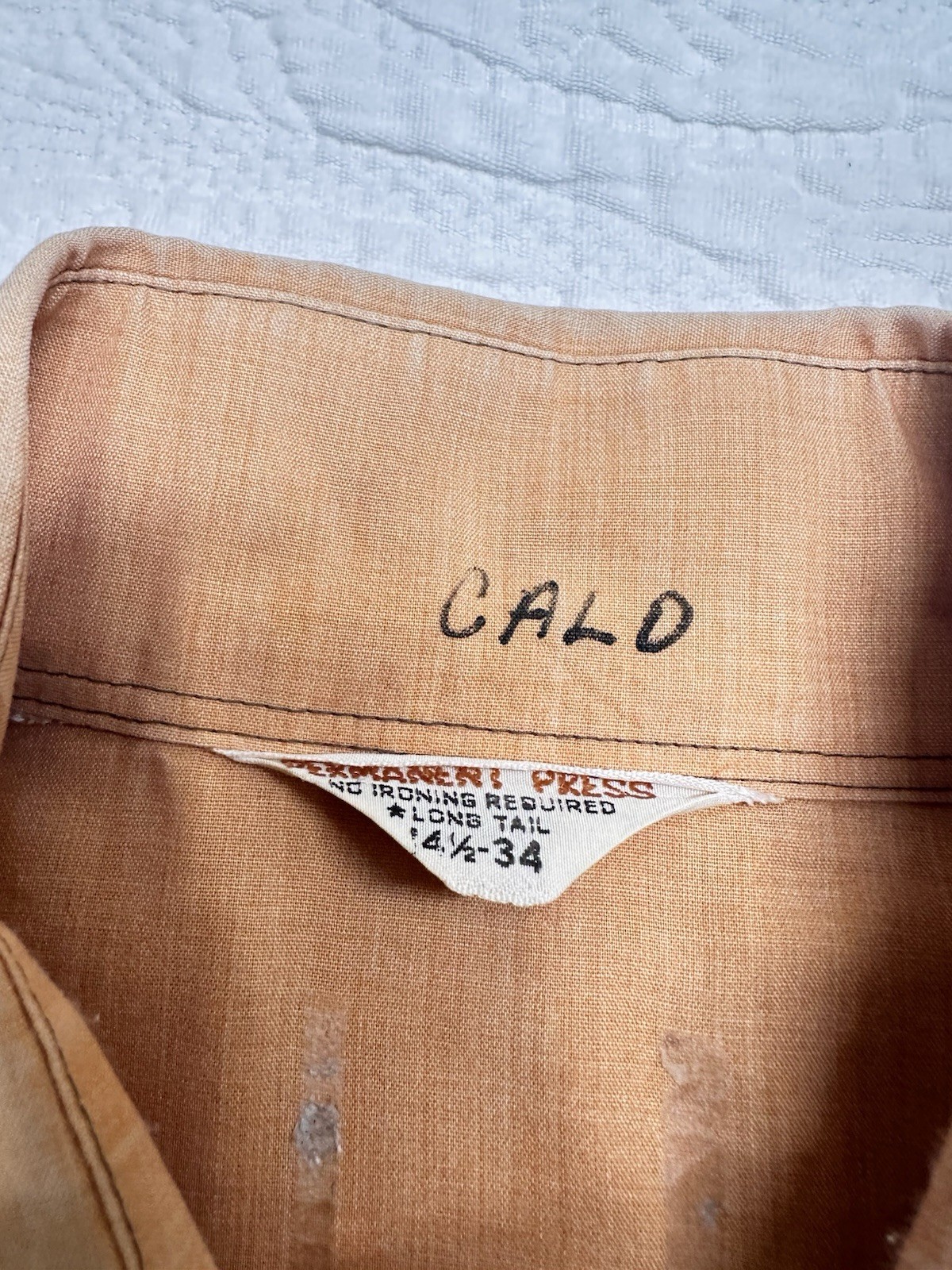 как выглядит Vintage 1960s Light Orange Pearl Snap Western Shirt  Long Tail  14.5x34 фото