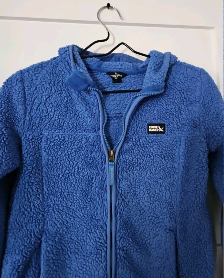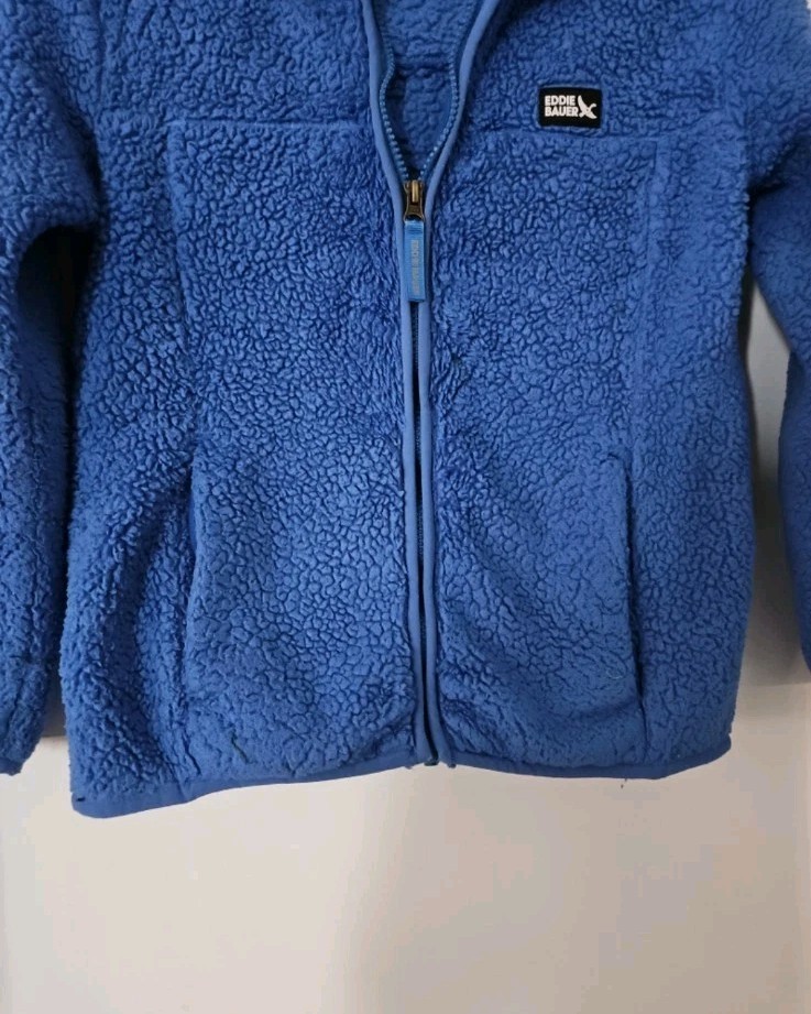 как выглядит Eddie Bauer Kids Size S 7/8 Blue Sherpa Fleece Full-Zip Hooded Jacket фото
