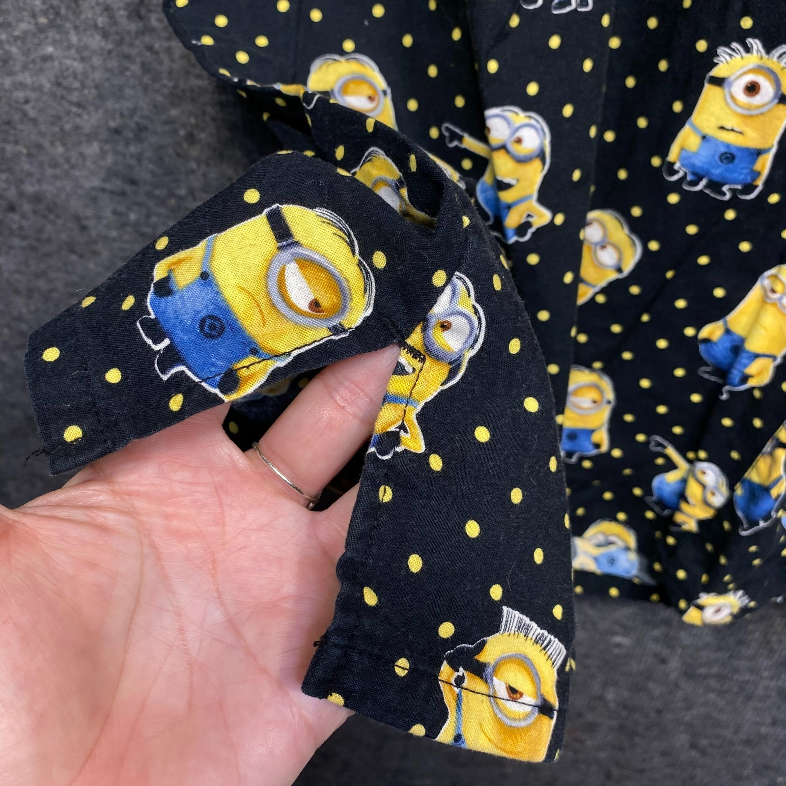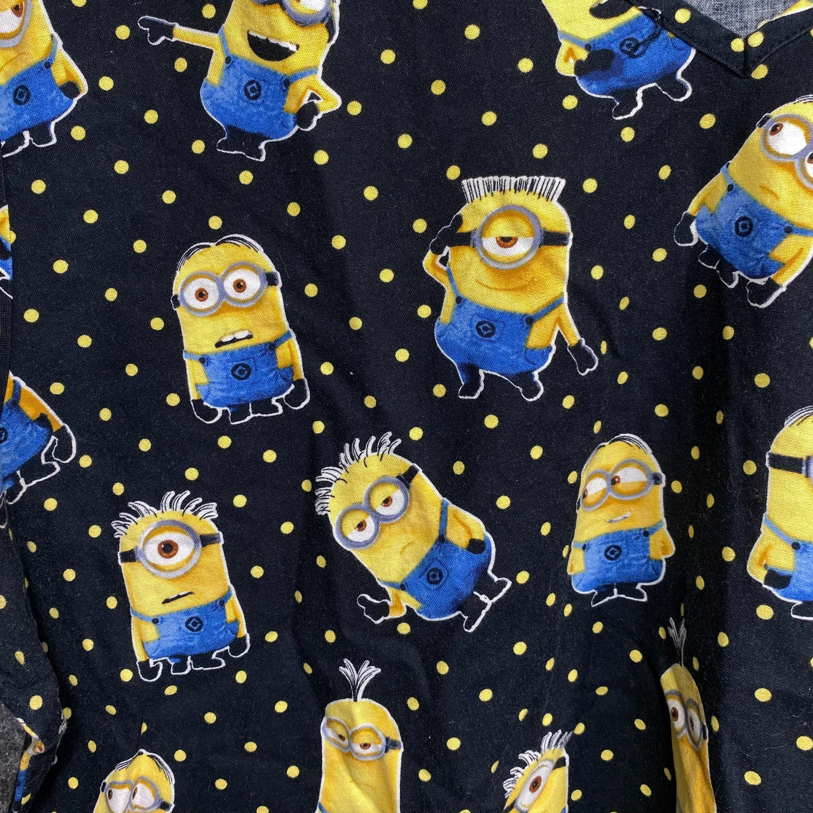 как выглядит DESPICABLE ME Scrub Top Black Polka Dots Minions XL 3 Front Pockets фото