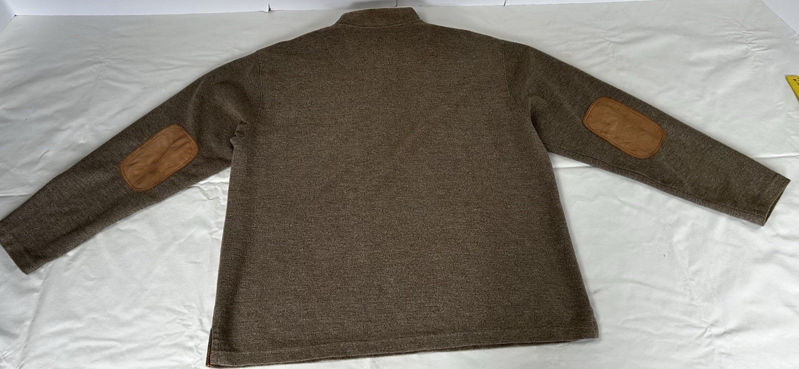 как выглядит ORVIS Mens XL Brown Leather Elbow Patch Trim 1/4 Zip Pullover Sweater фото