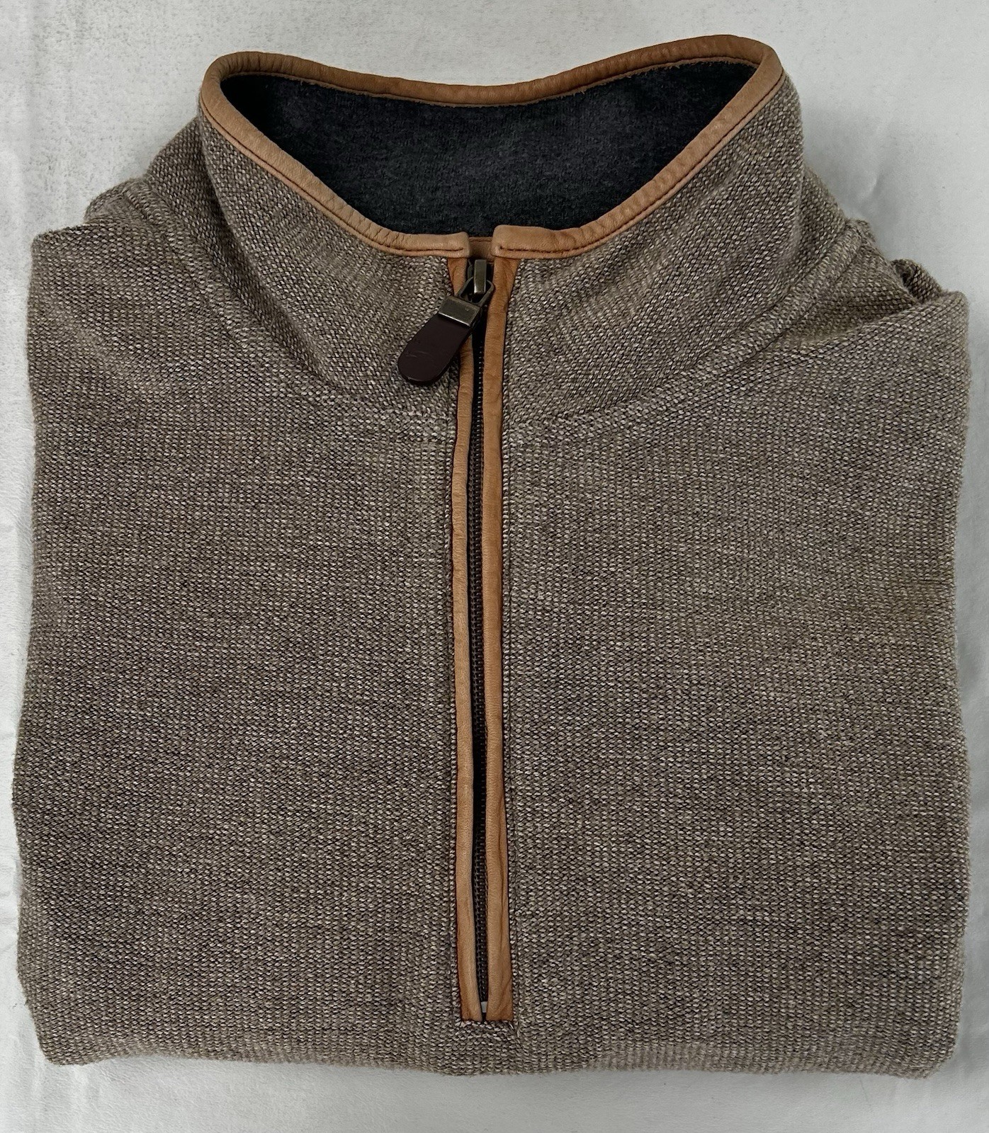 ORVIS Men's XL Brown Leather Elbow Patch Trim 1/4 Zip Pullover Sweater