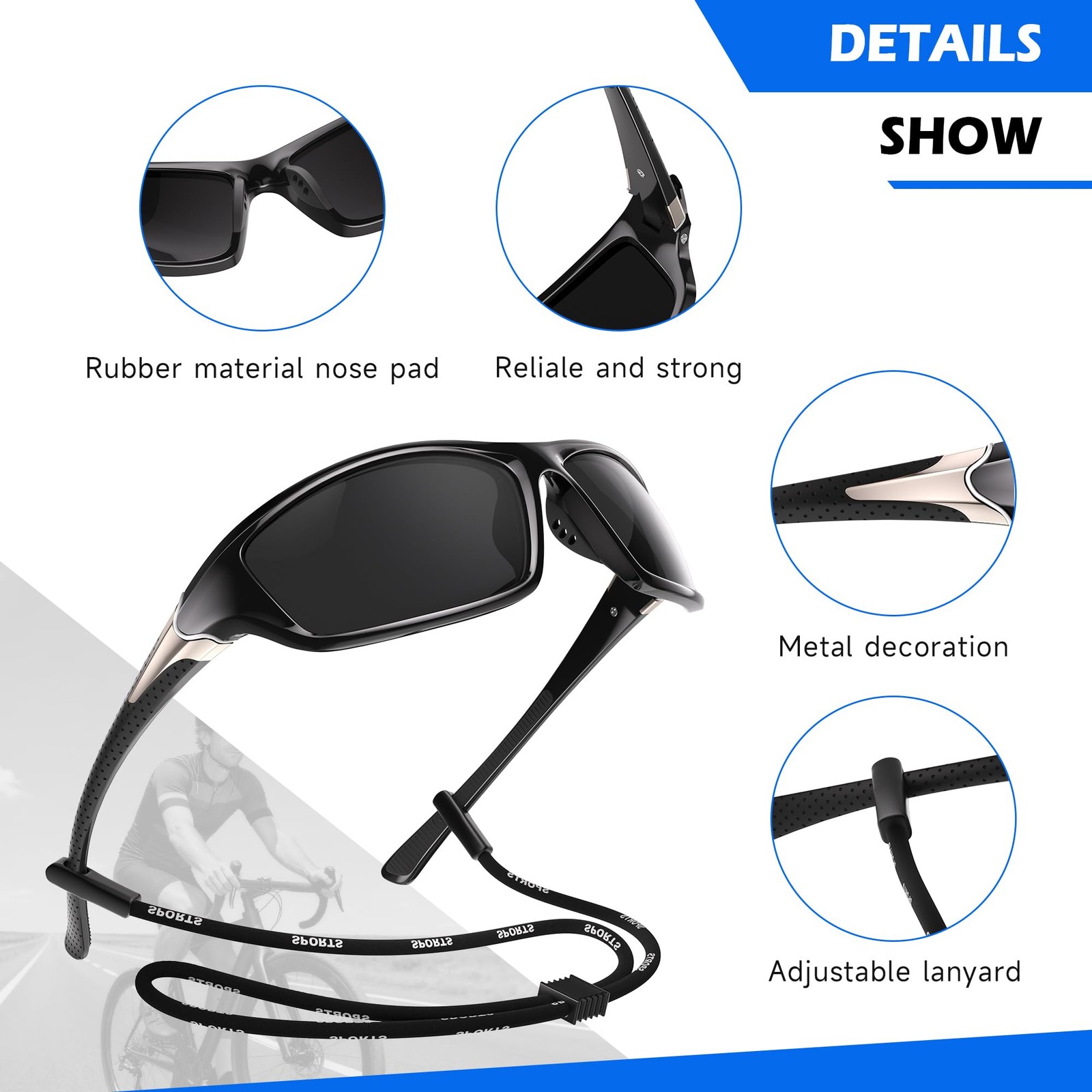 Polarized Sports Sunglasses for Men, Mens Sunglasses Wrap Around UV400