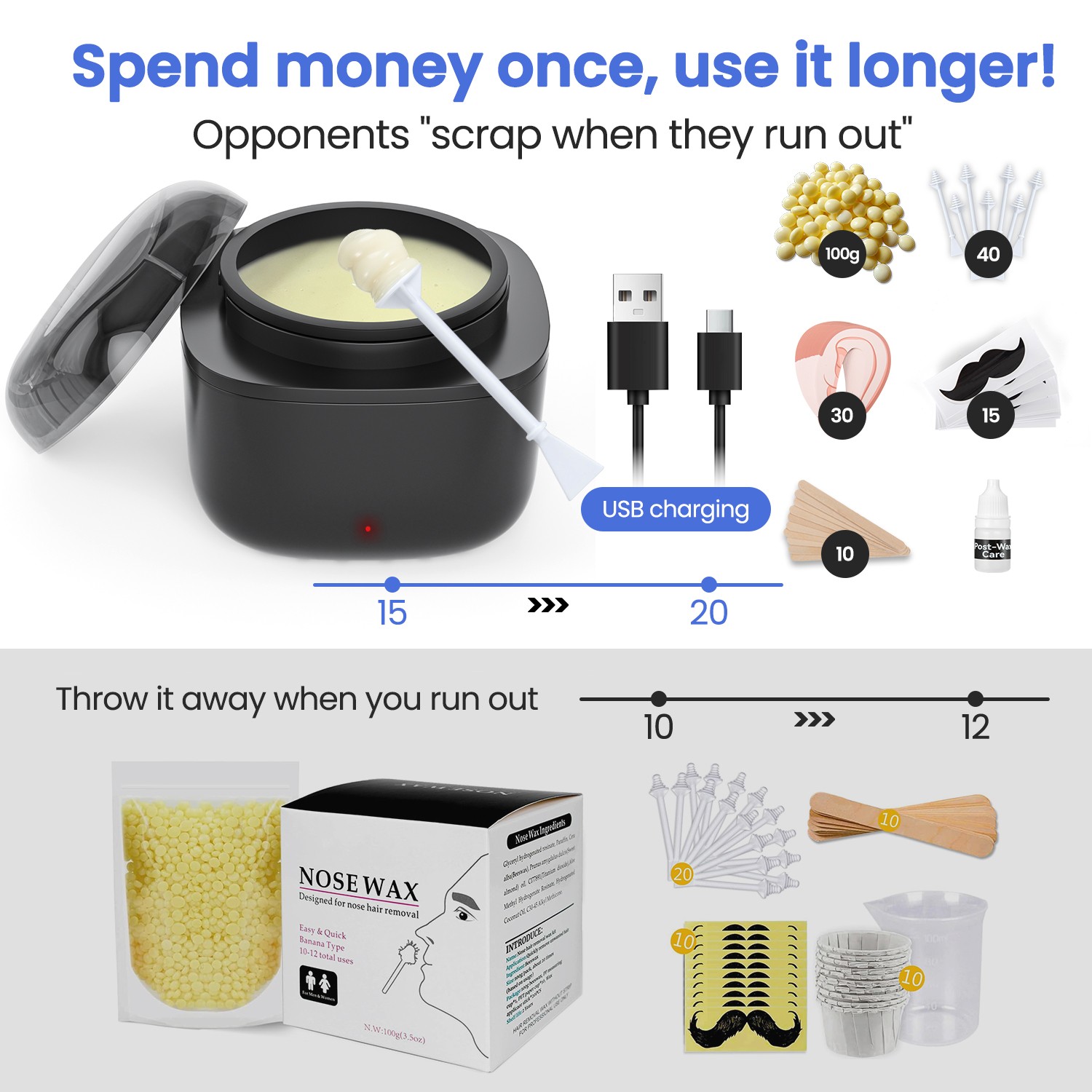 Gentle Painless Nose Hair Wax Kit USB Fast Heat Safe For Sensitive Skin