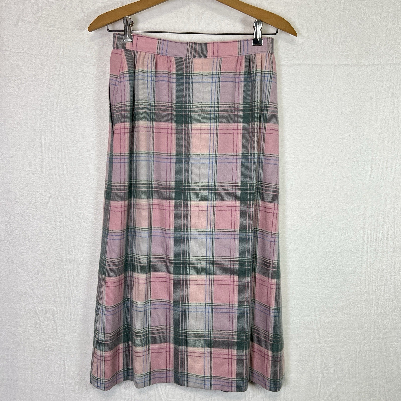 Vintage Pendleton Wool Midi Skirt Women s 6 Pink Gray Plaid Lined 80s 90s