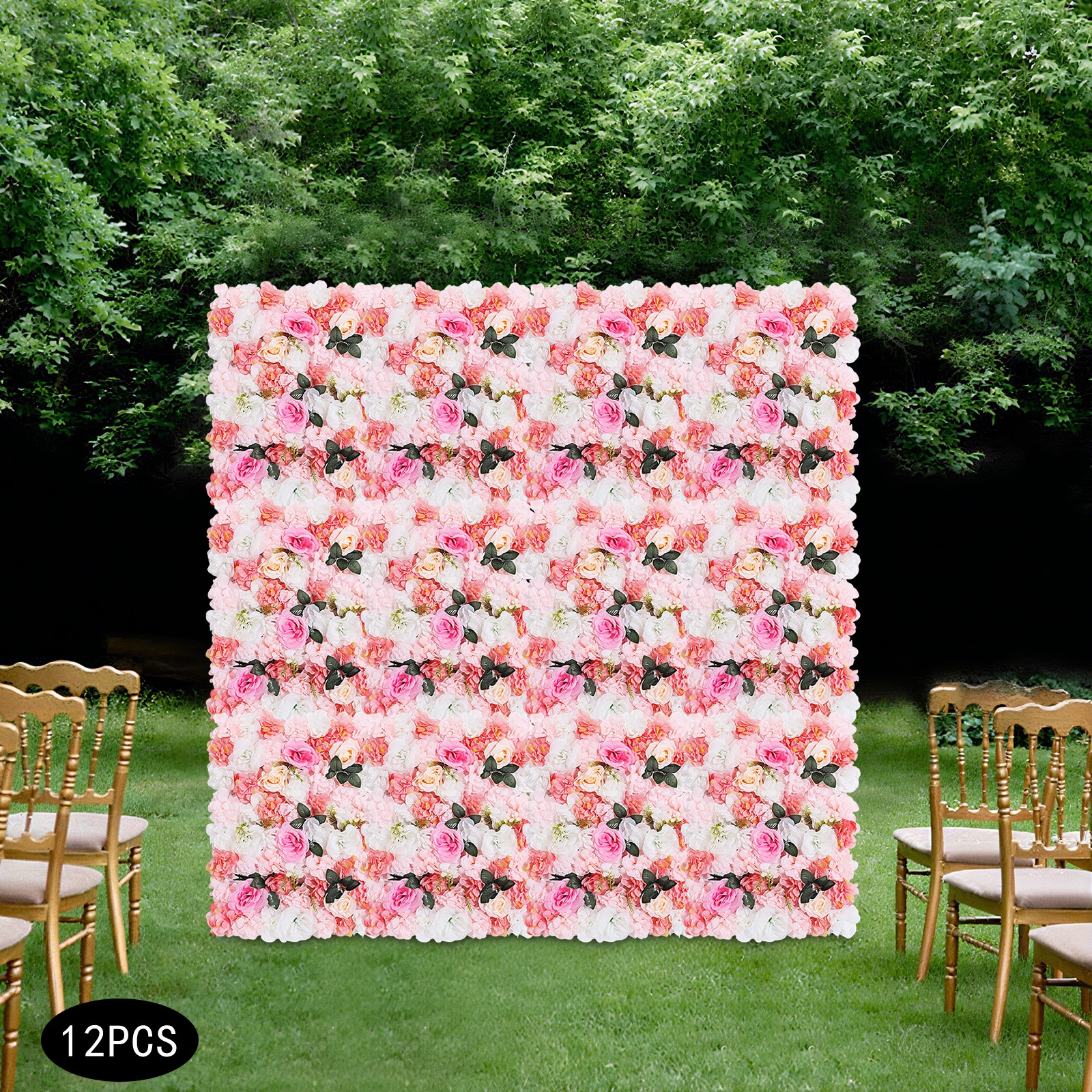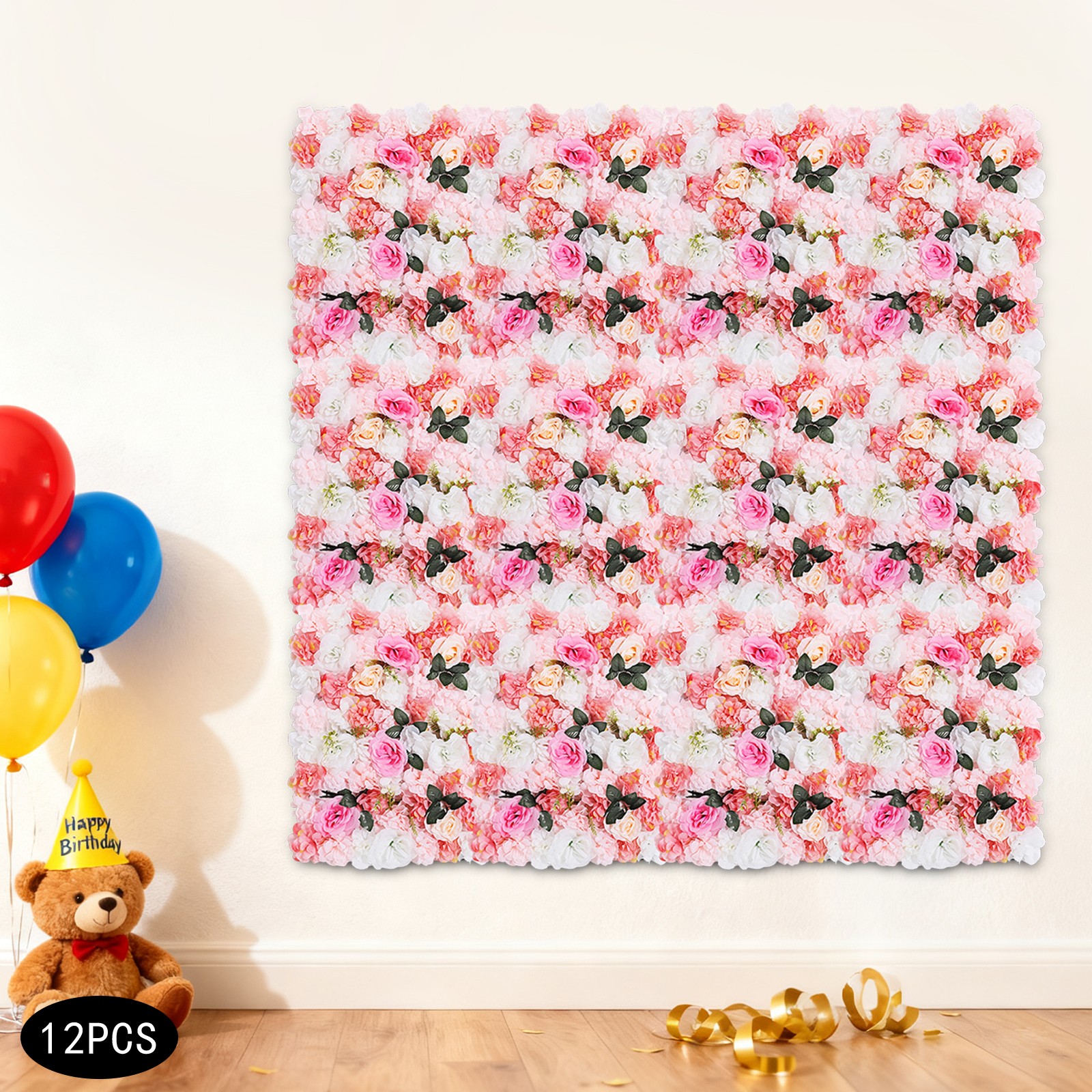 12Pcs Artificial Flower Wall Rose Floral Panel Backdrop Decor for Party Wedding