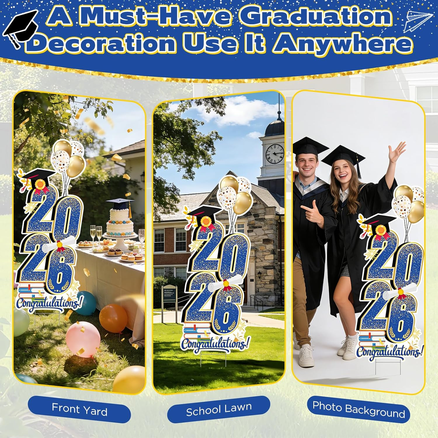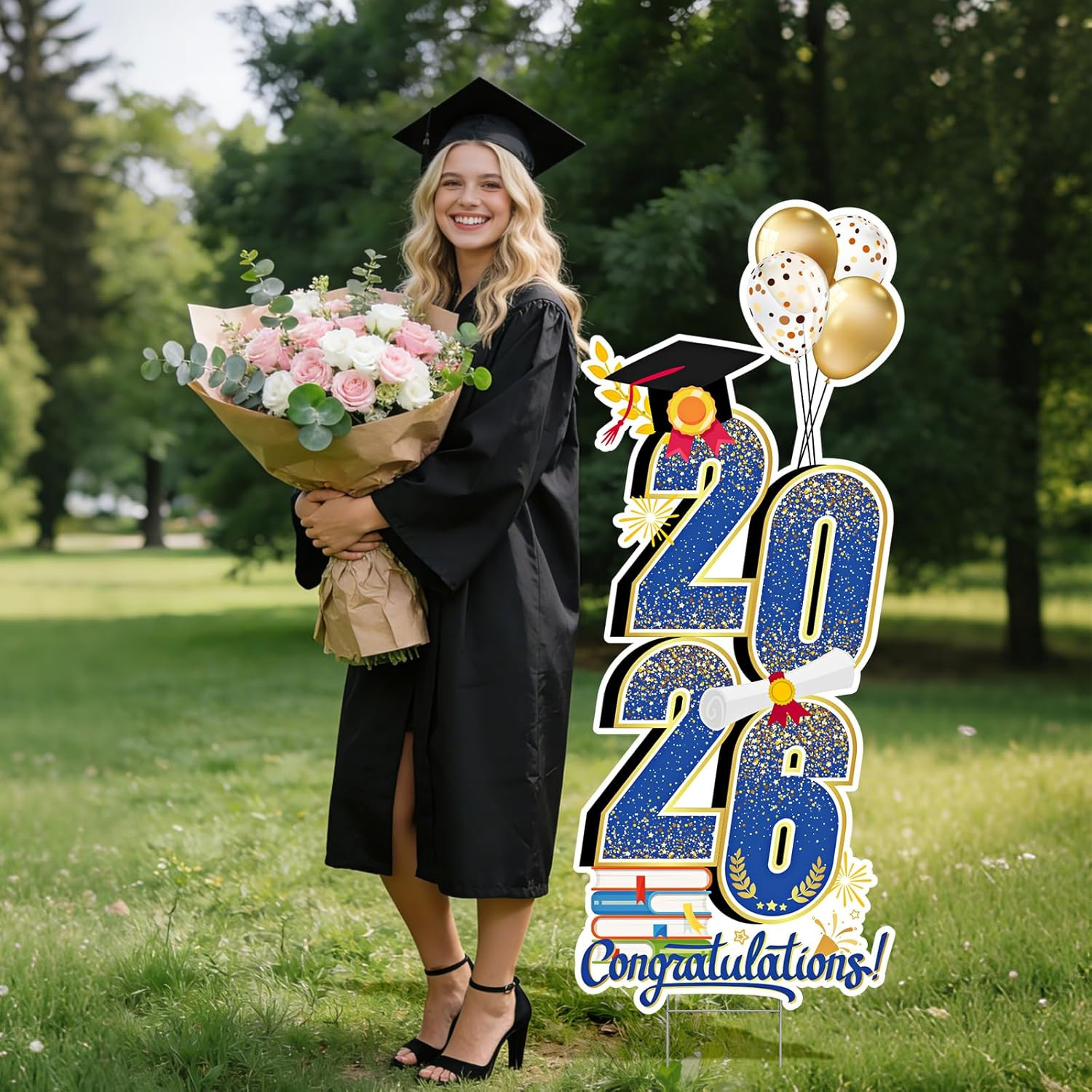 2026 Graduation Decorations Yard Sign, 3.5 FT Tall Class of 2026 Congrats Grad Y