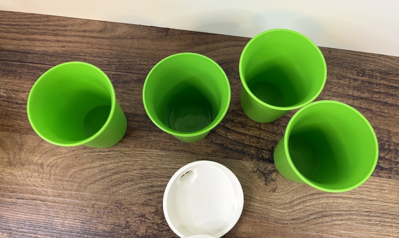 как выглядит Lot Of 4 Vintage Green Tupperware 4 Bell Tumblers With Sippy Flat Lids фото