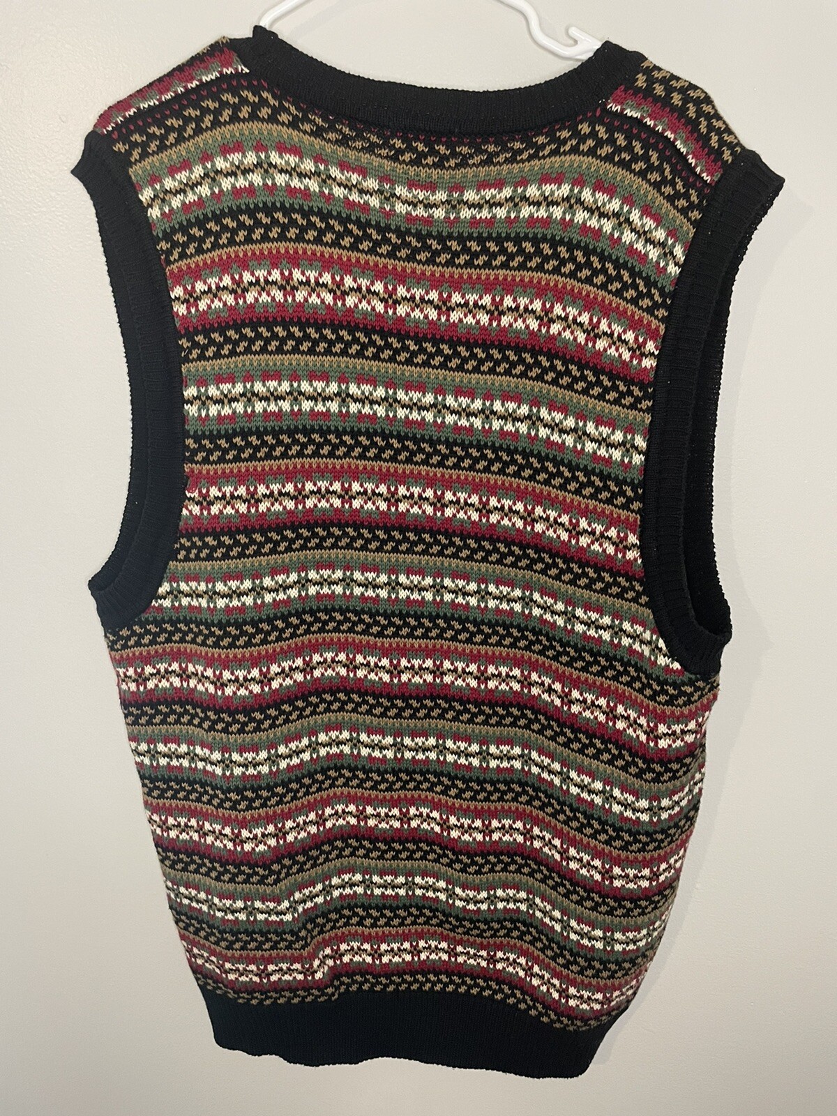 VTG Izod Mens Vest Red/black/green Cotton V Neck Striped Button