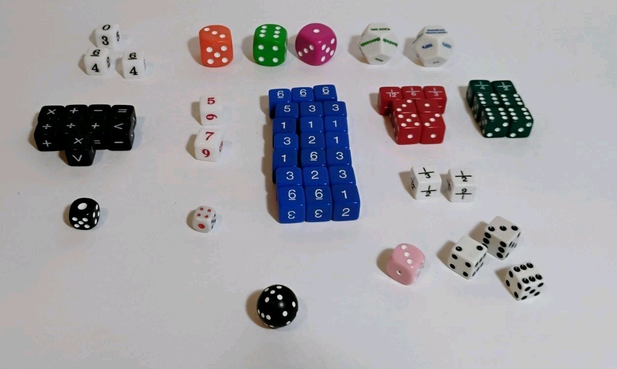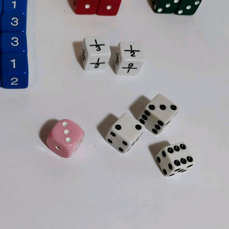 Dice Lot 62 Blue Red White Black Fractions Arithmetic Operators