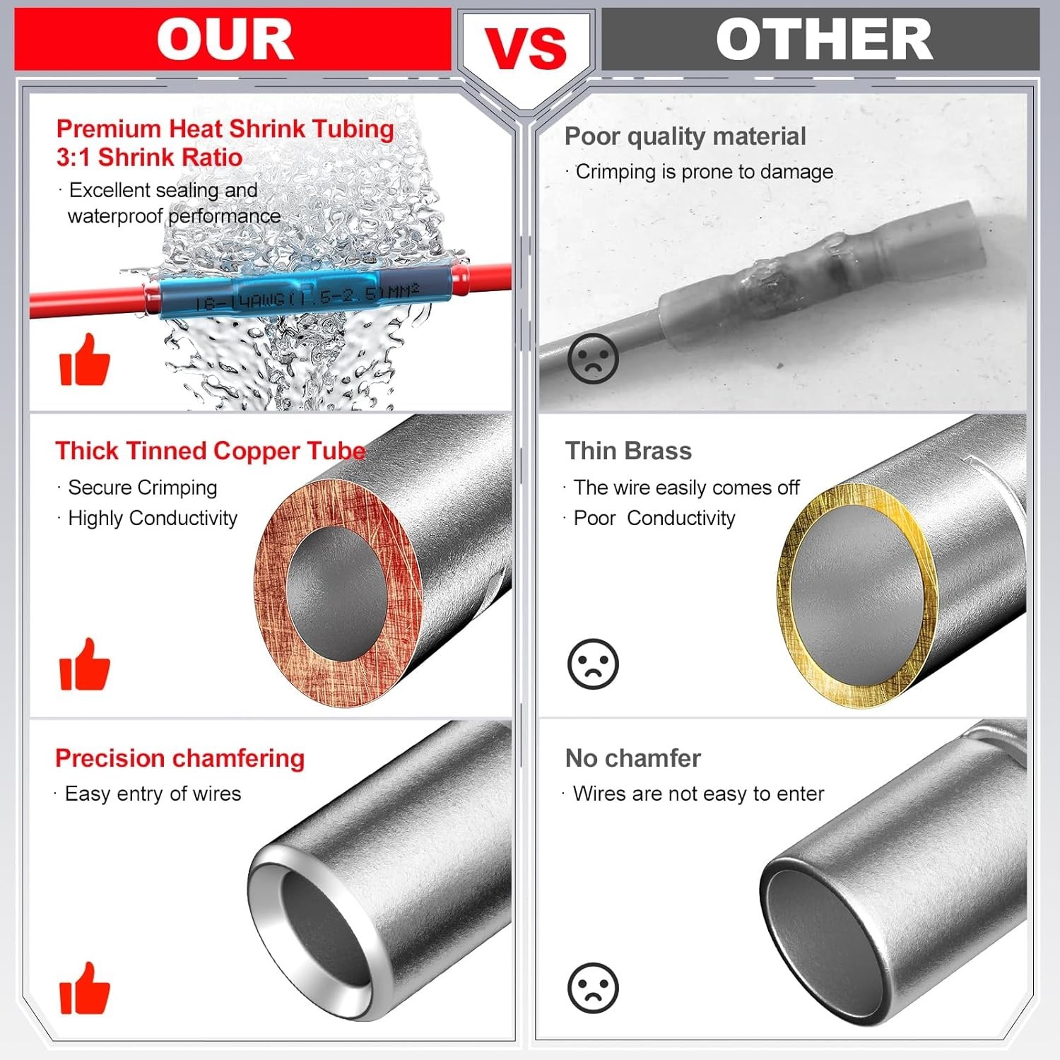 Heat Shrink Butt Connectors Kit 22-10 AWG, 100 pcs Waterproof Crimp Splice Te...