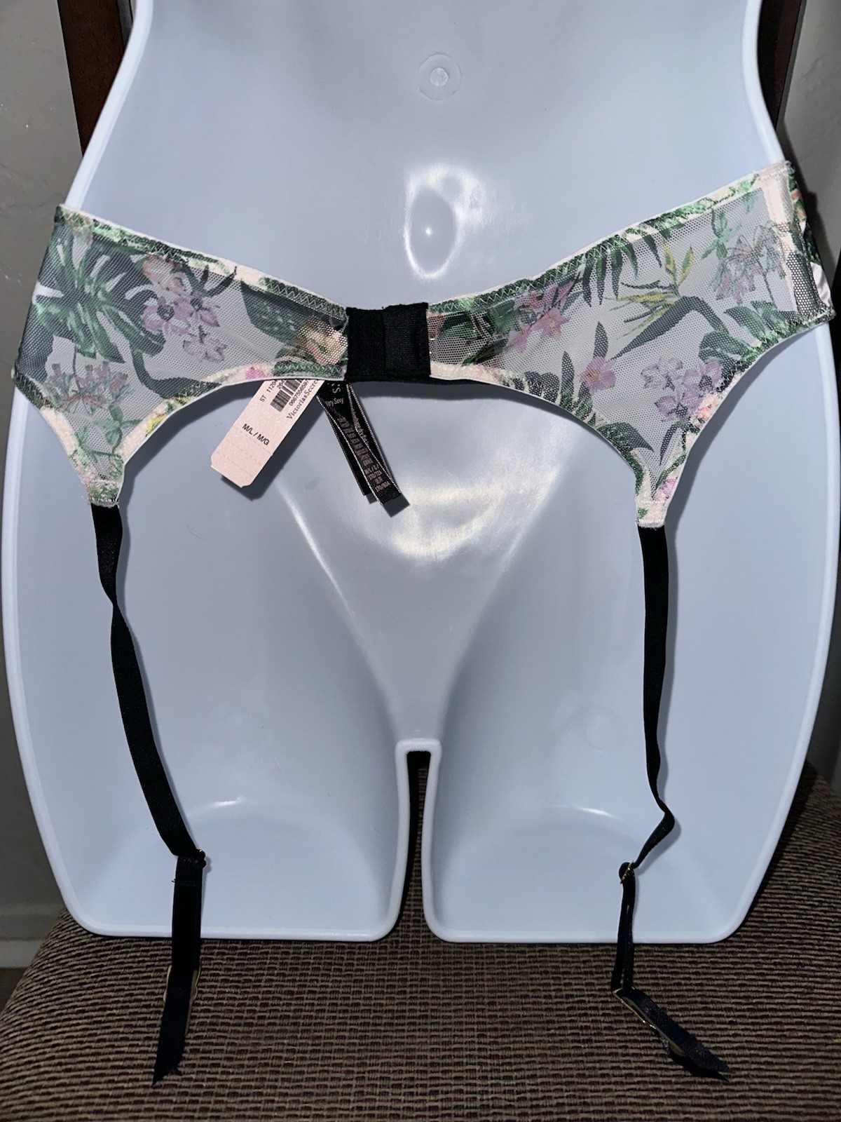 как выглядит Victorias Secret Floral Mesh Garter Belt Pink Green Gold Accent M/L фото