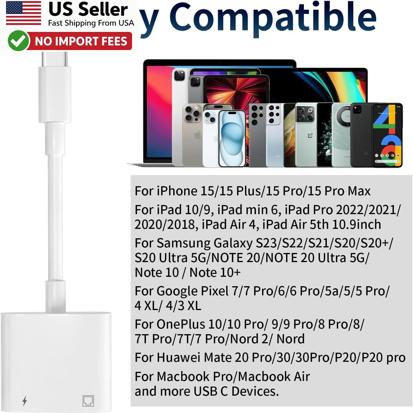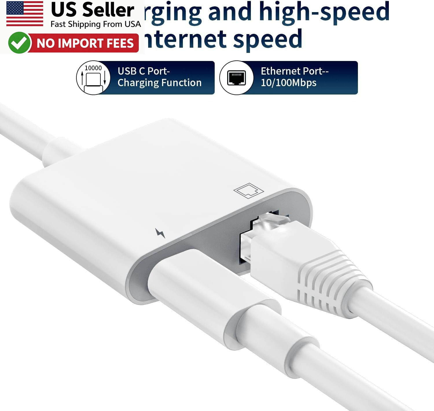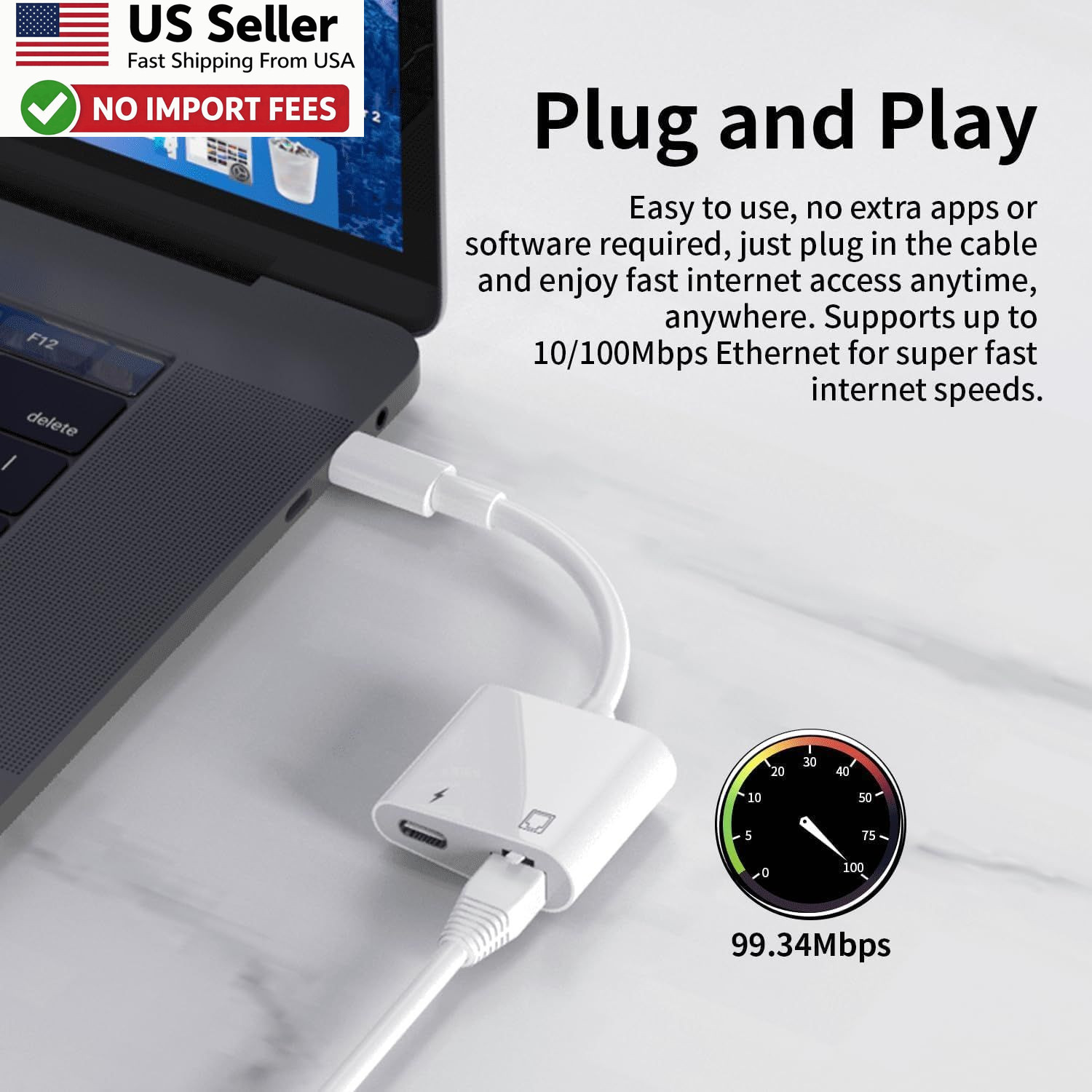 MFi Certified USB C RJ45 Ethernet Adapter 2in1 60W Charge iPhone 15 16 FROM USA