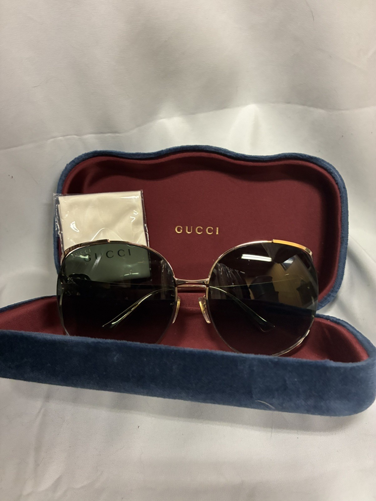 как выглядит Gucci GG0225SK 002 Gradient Brown/Gold Sunglasses фото