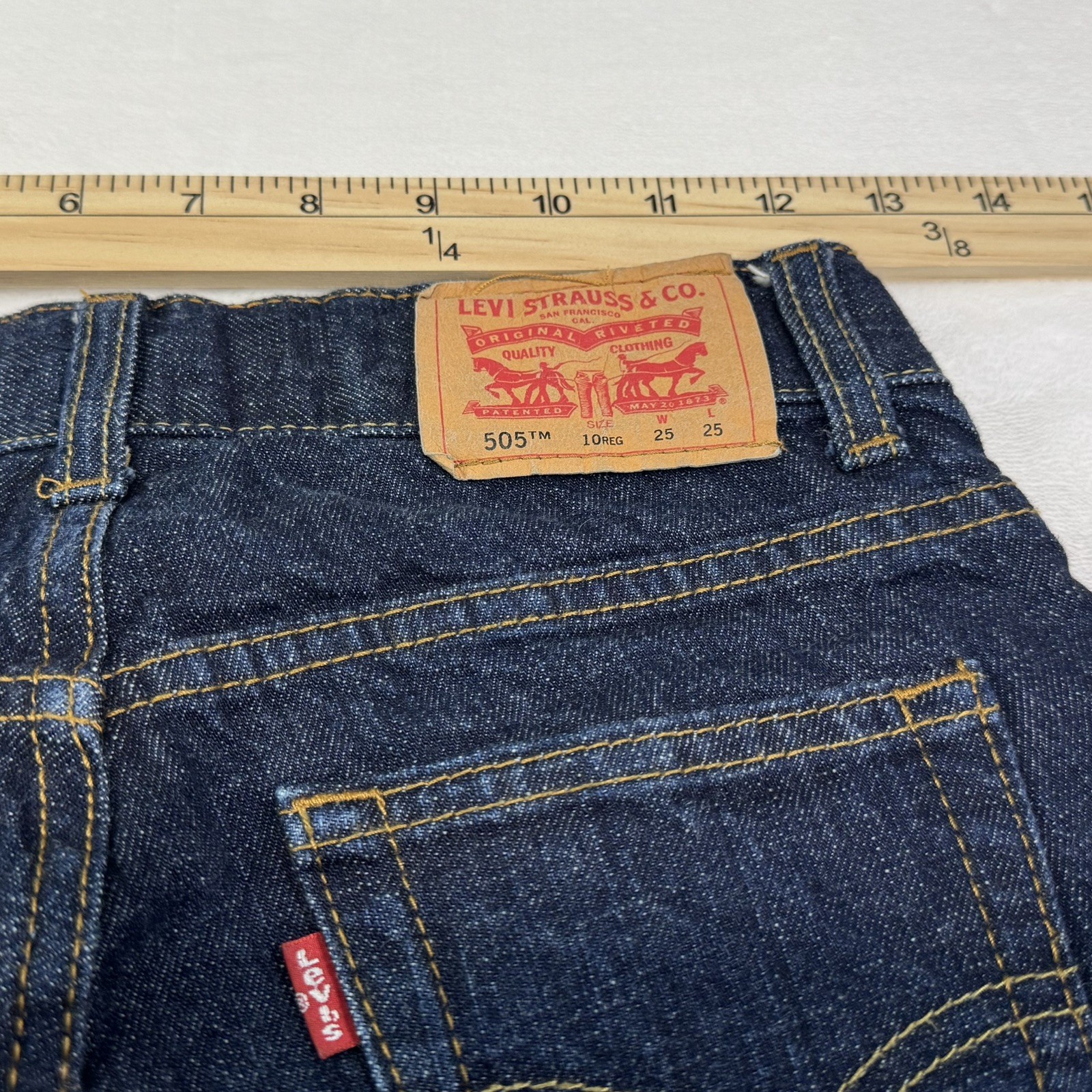 Levi s 505 Boys Jeans Size 10 Reg 25x25 Dark Wash Straight Leg Adjustable Waist
