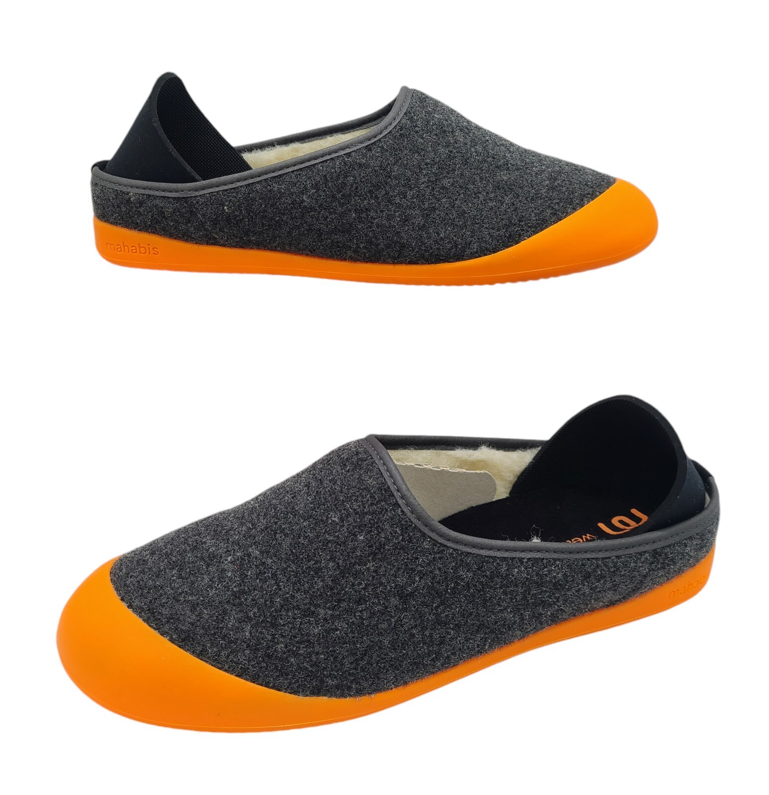 Mahabis Men's Sz 46 US 12 Curve Mule Wool Foam Slippers Gray Orange Slip on