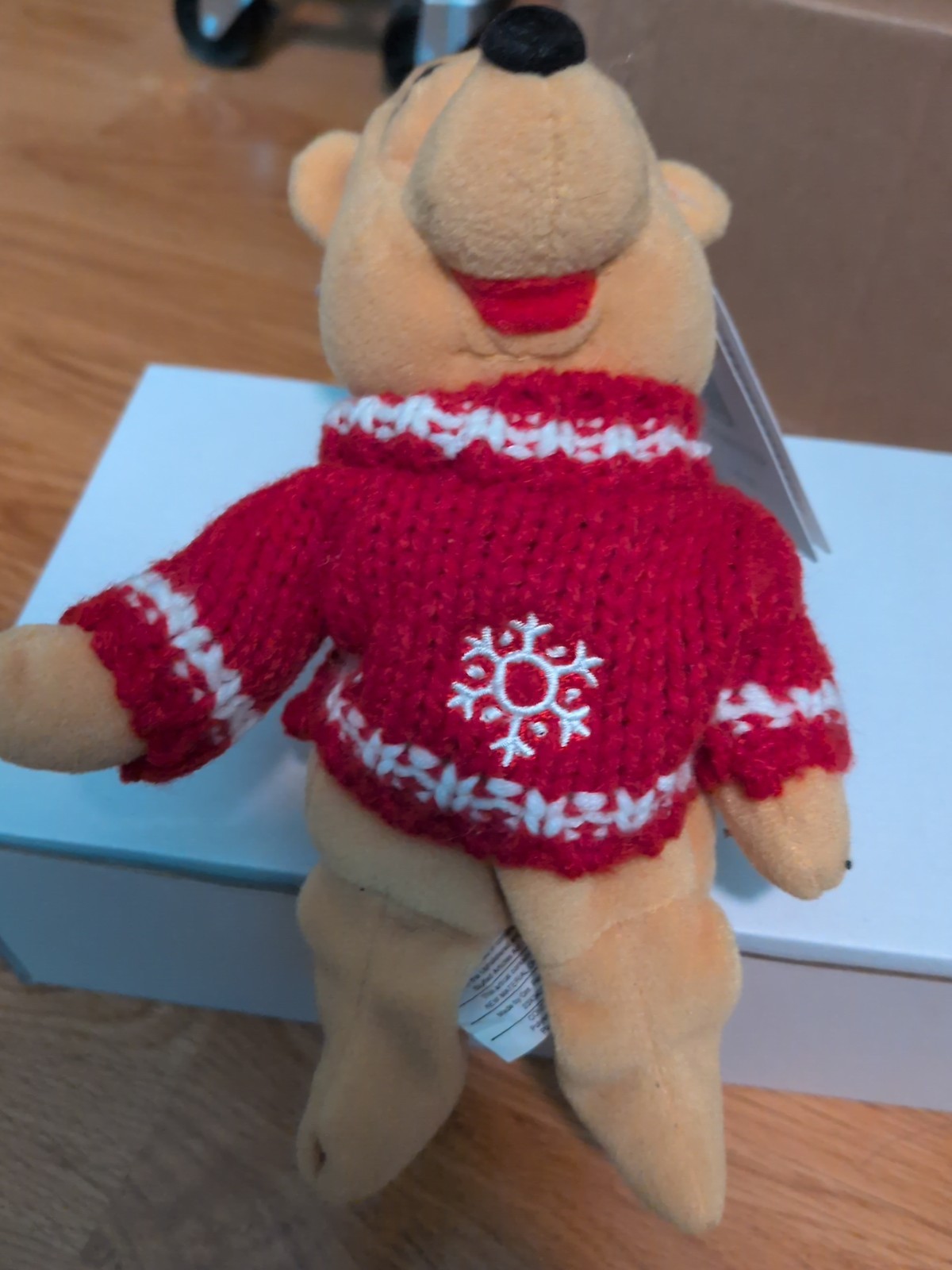 • Disney Store Snowflake Sweater Winnie The Pooh Bean Bag Plush Christmas Decor