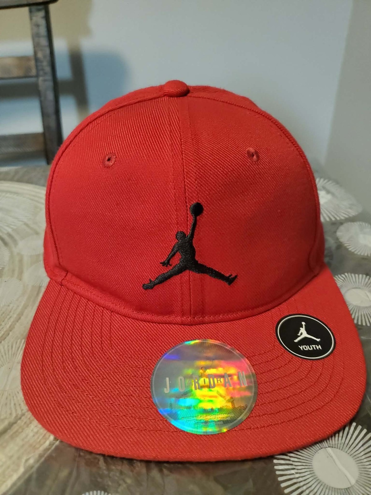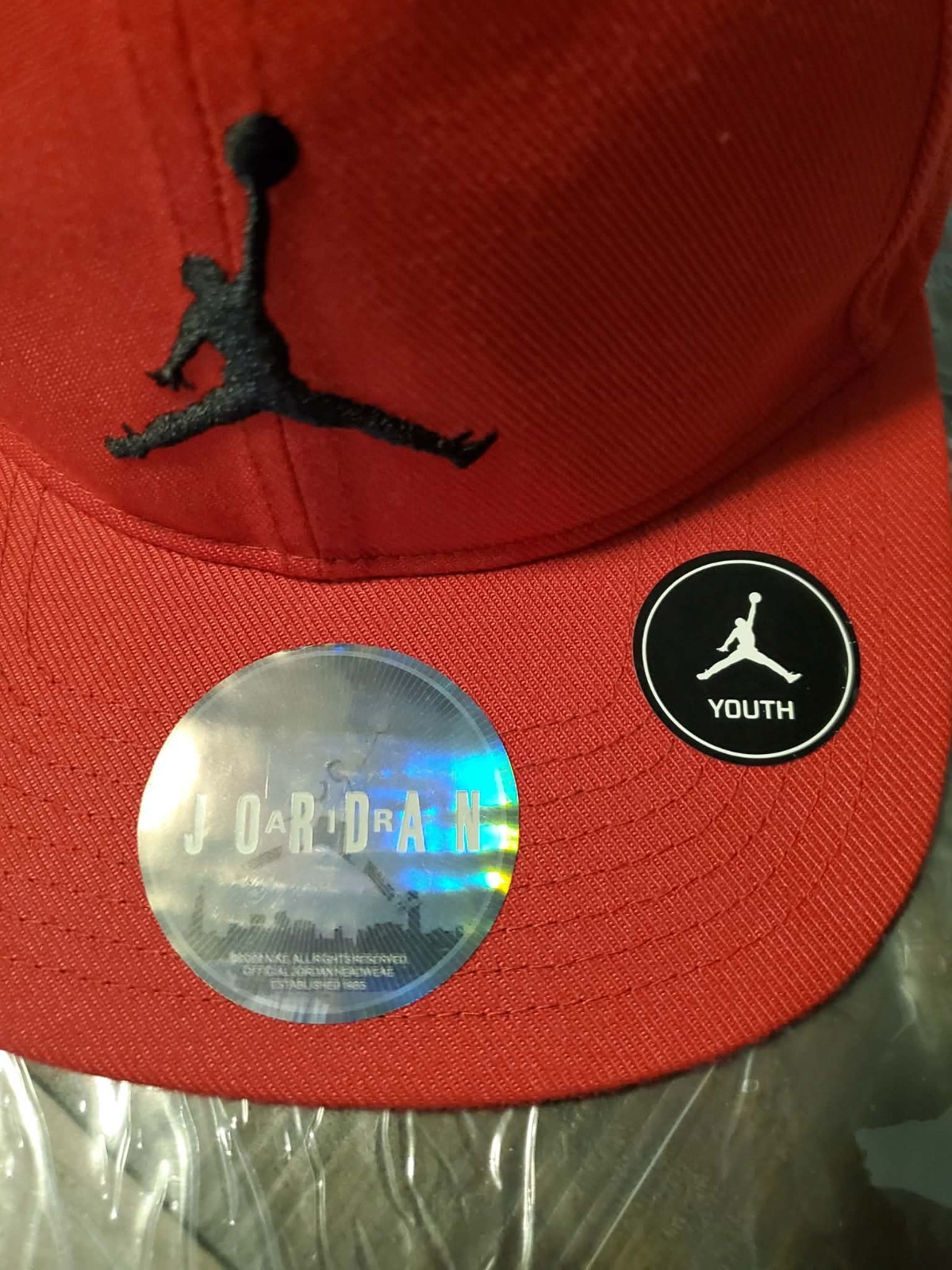 • Jordan Youth Red Black NBA Basketball Hat with Jumpman Logo