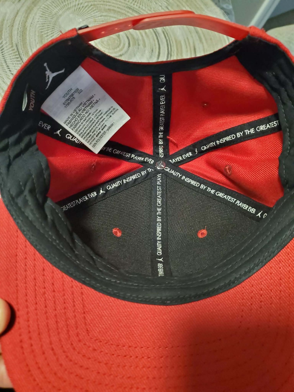 как выглядит Jordan Youth Red Black NBA Basketball Hat with Jumpman Logo фото