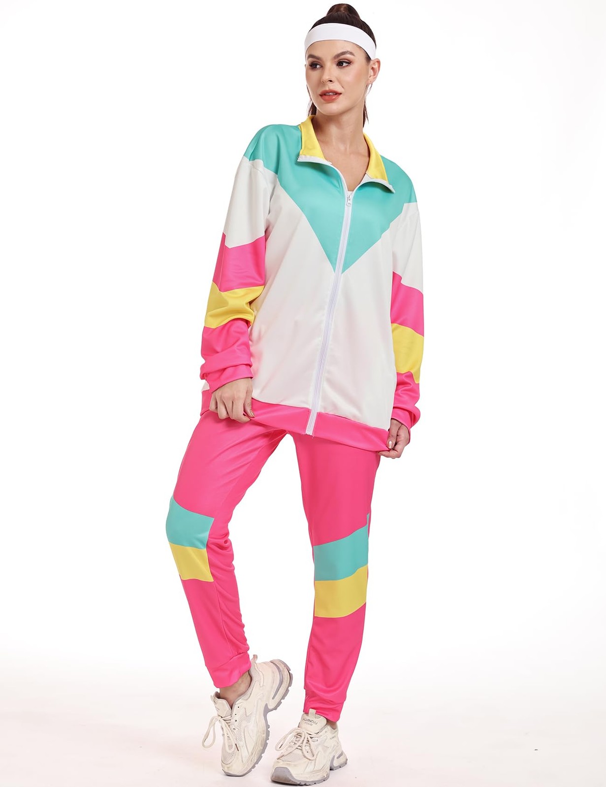 Arssm 80s 90s Outfit Sets for Women Color Block 2 Piece Tracksuit Windbreaker...