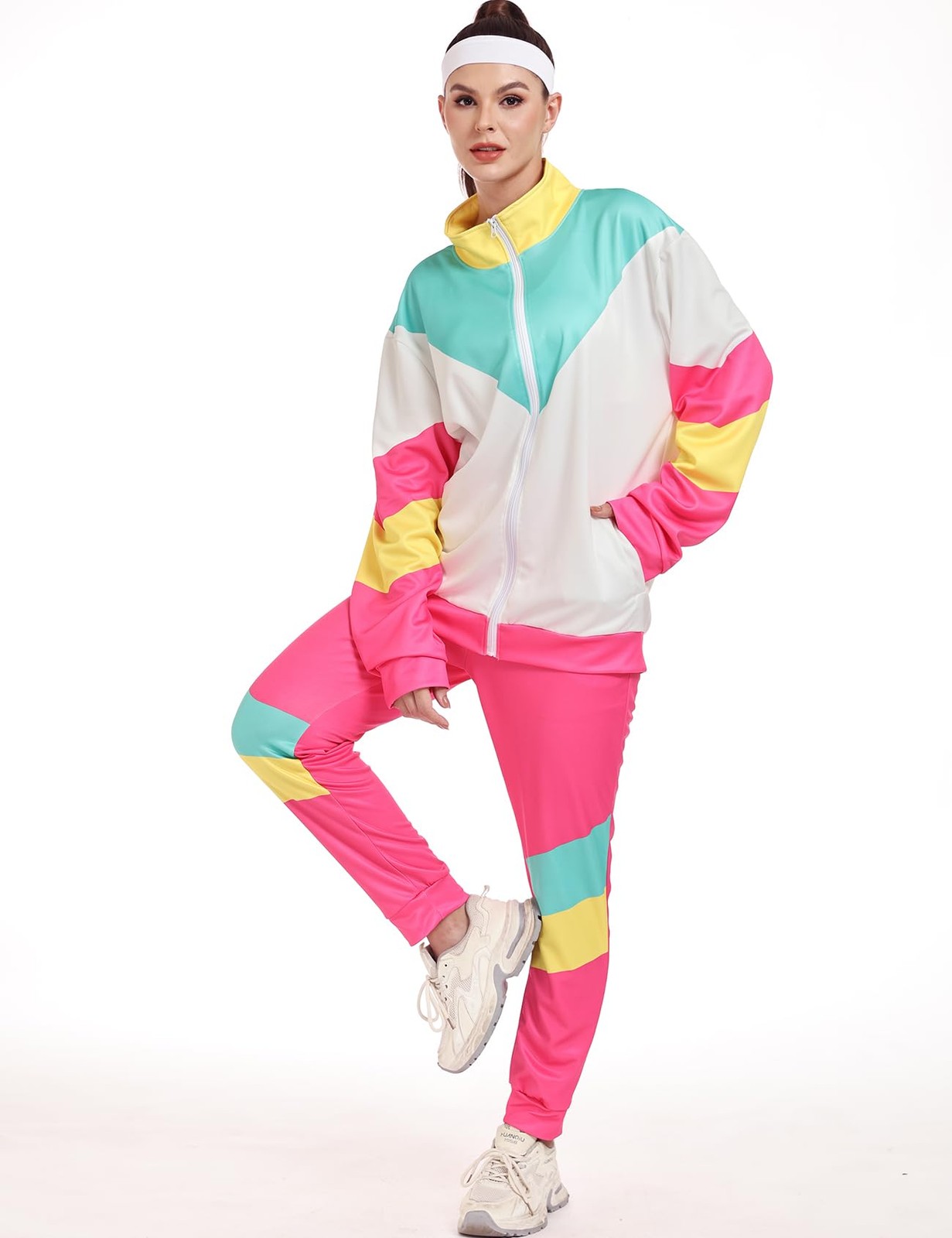 как выглядит Arssm 80s 90s Outfit Sets for Women Color Block 2 Piece Tracksuit Windbreaker... фото