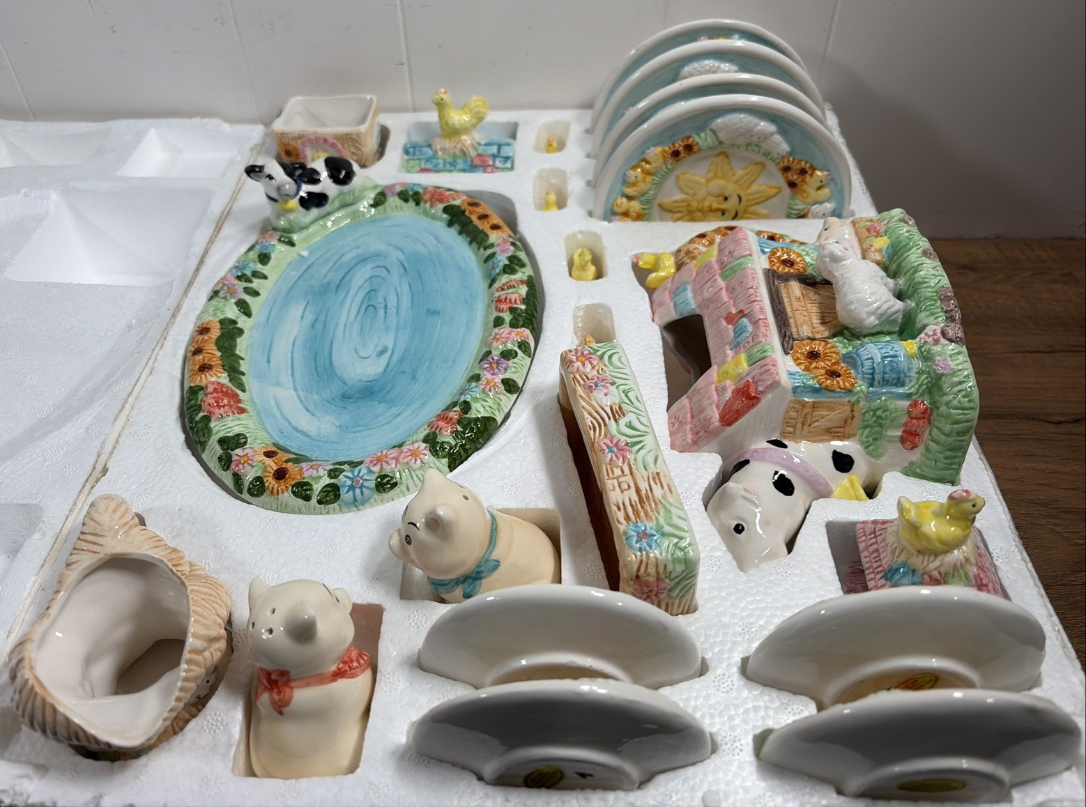 как выглядит Vintage 1994 Childrens Country Farm Ceramic 23 Piece Hand Painted Tea Set фото