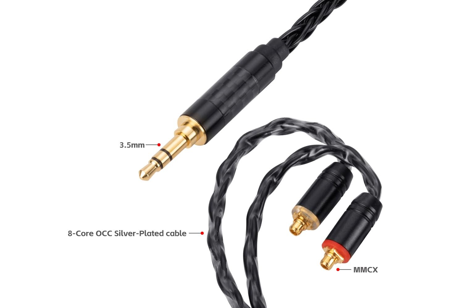 3.5mm to MMCX IEM Cable 8Core OCC SilverPlated Earbud Cord 1.3 Meter