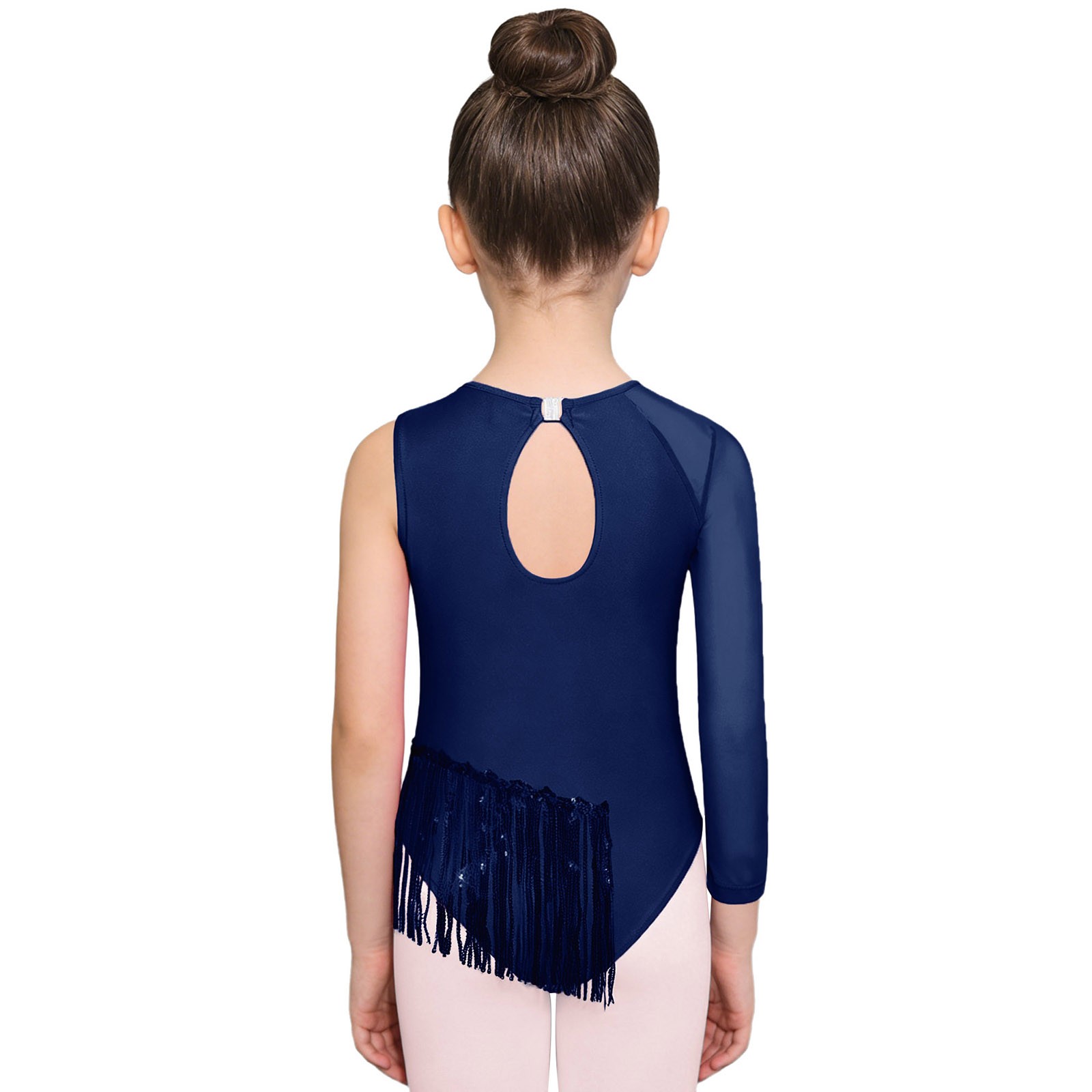 как выглядит Girls Leotard Sequins Jumpsuit Festival Bodysuit Keyhole Back Costume Latin фото