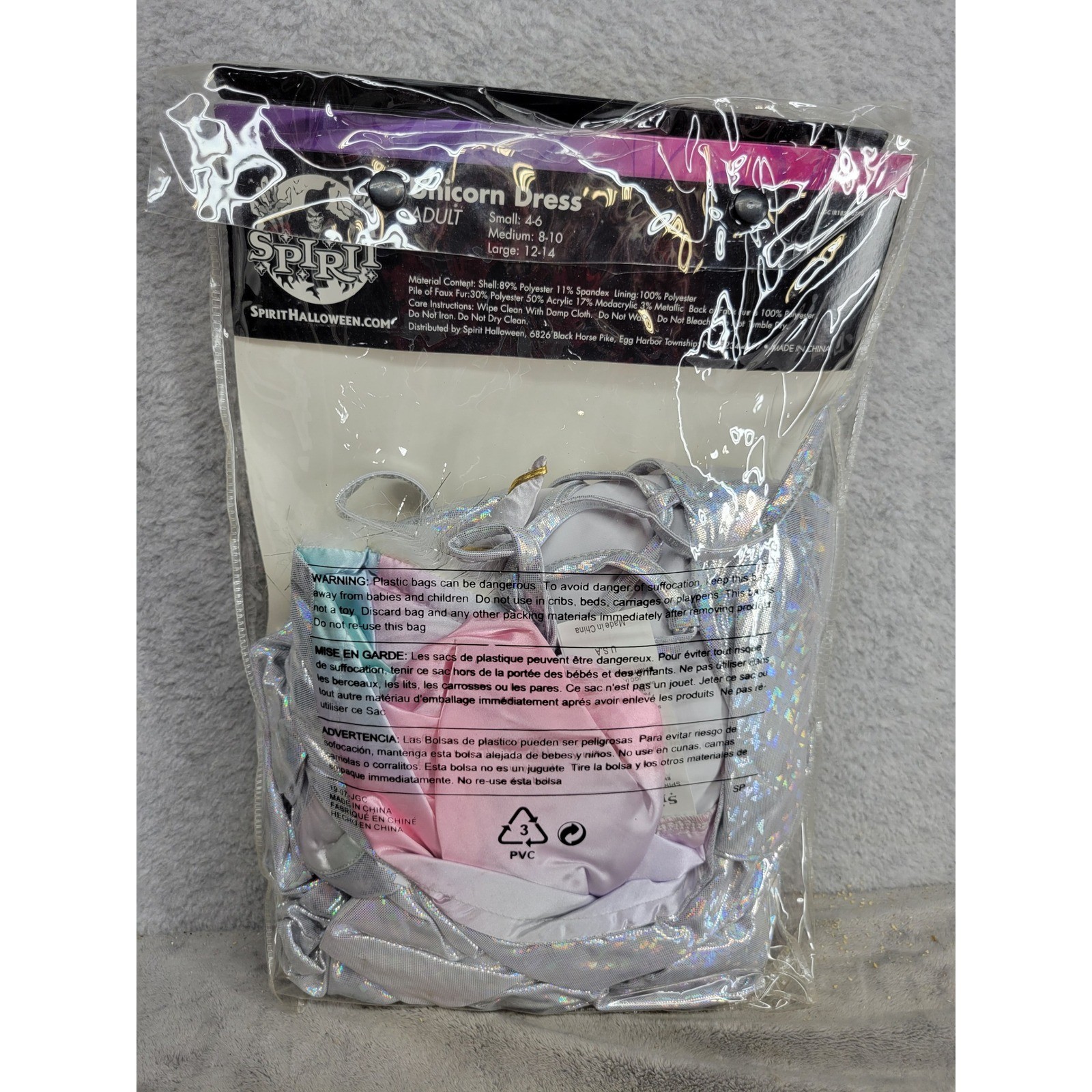 Spirit Halloween Unicorn Dress Adult Costume, Iridescent Hooded Size Large
