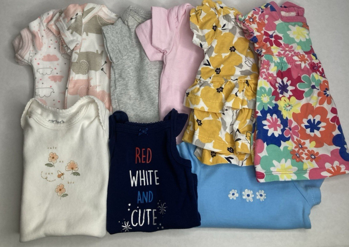 Baby Girl Summer Clothes Newborn, 0-3 mo and 3 mo Carter's and more lot of 9