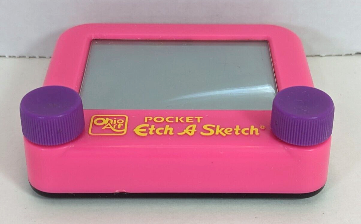 Vintage Pocket Etch-A-Sketch Ohio Art - Pink - Travel Size GOOD COND.