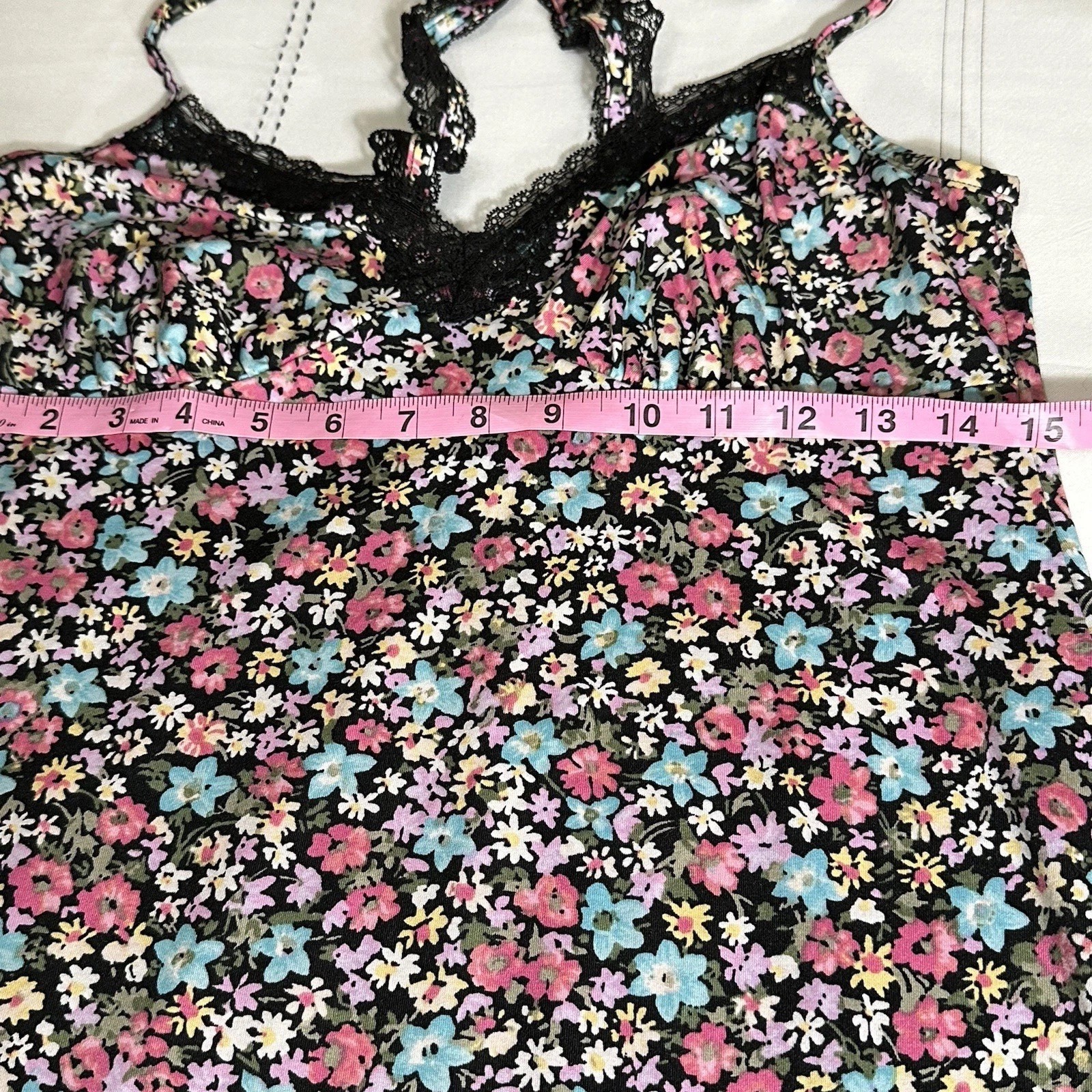 как выглядит Black Floral Short Gown Size Small Womens Slip Dress Coquette Fairy фото