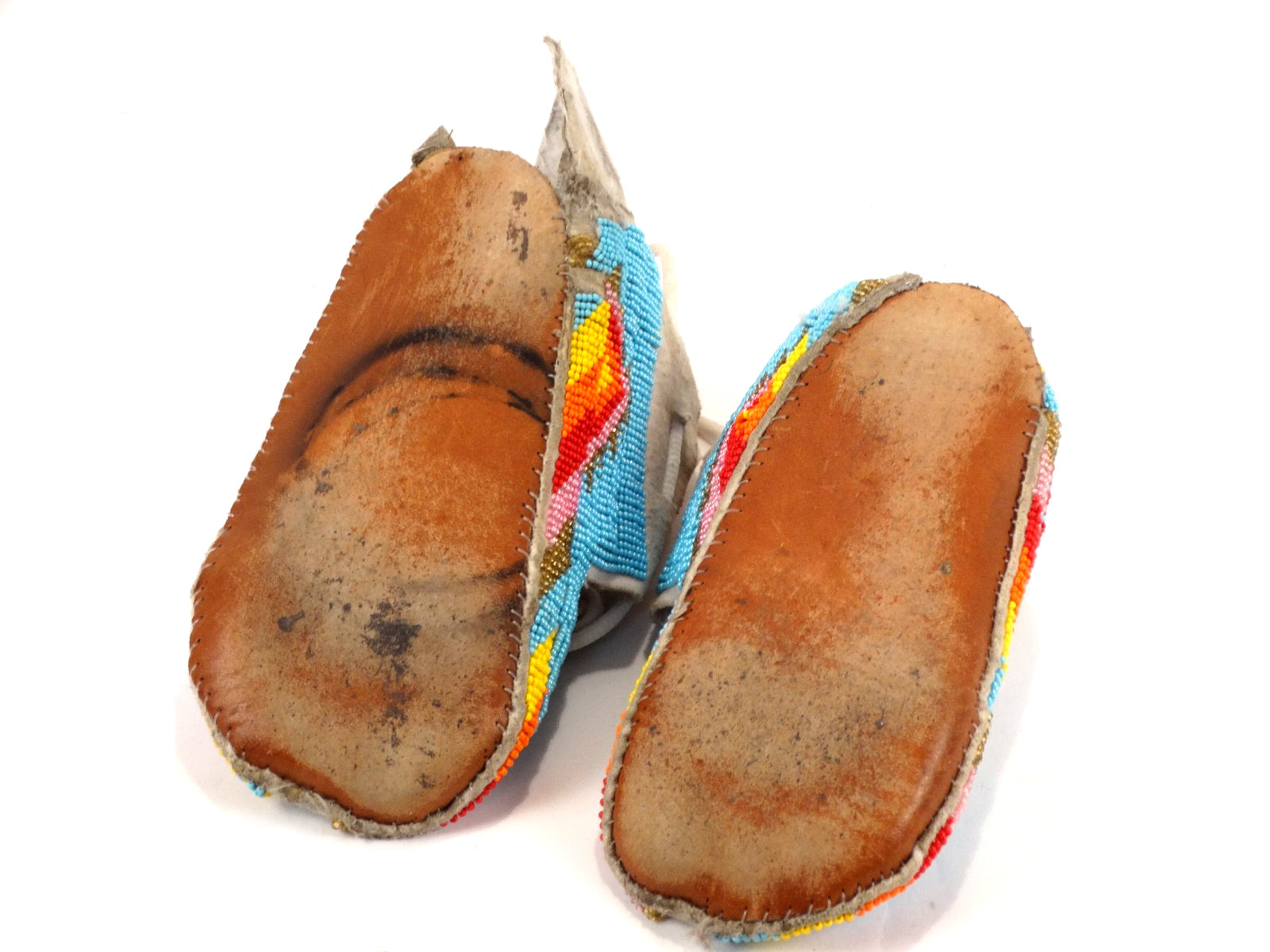 • Vintage American Indian Youth Beaded Leather Moccasins 6-3/4" inside length