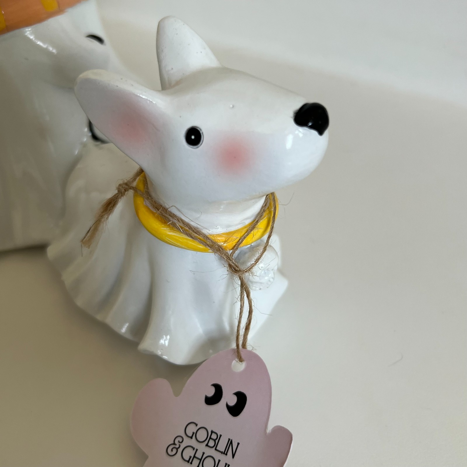 Goblin Ghoul Ghost Walking Ghost Dog With Scarf Halloween Decor New