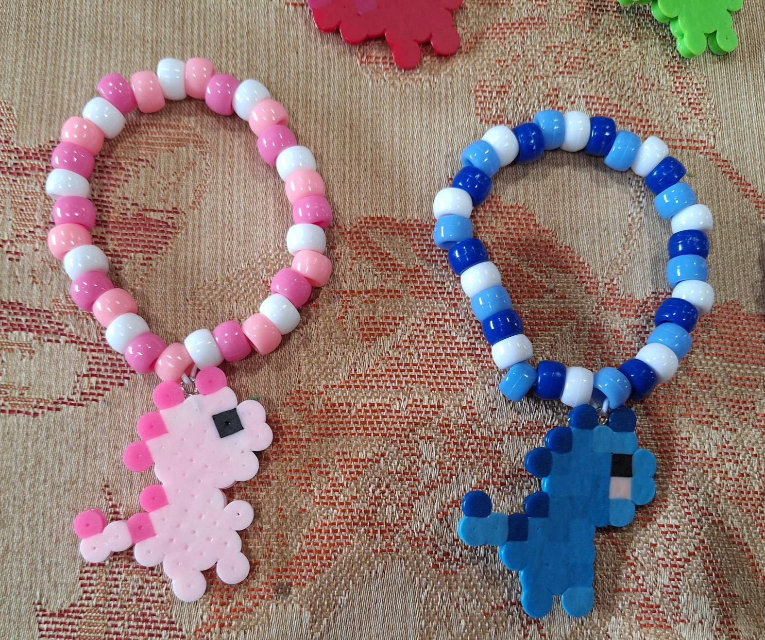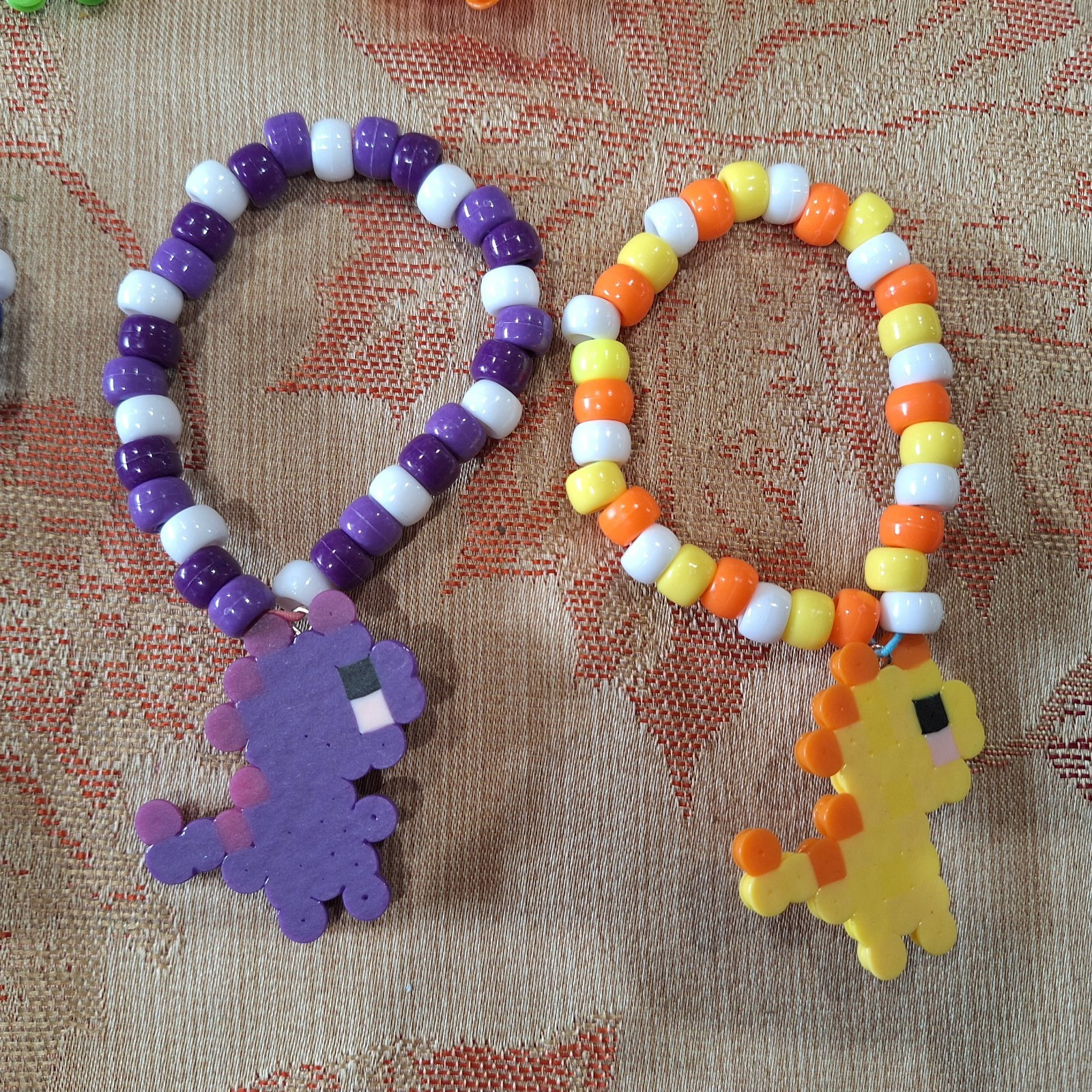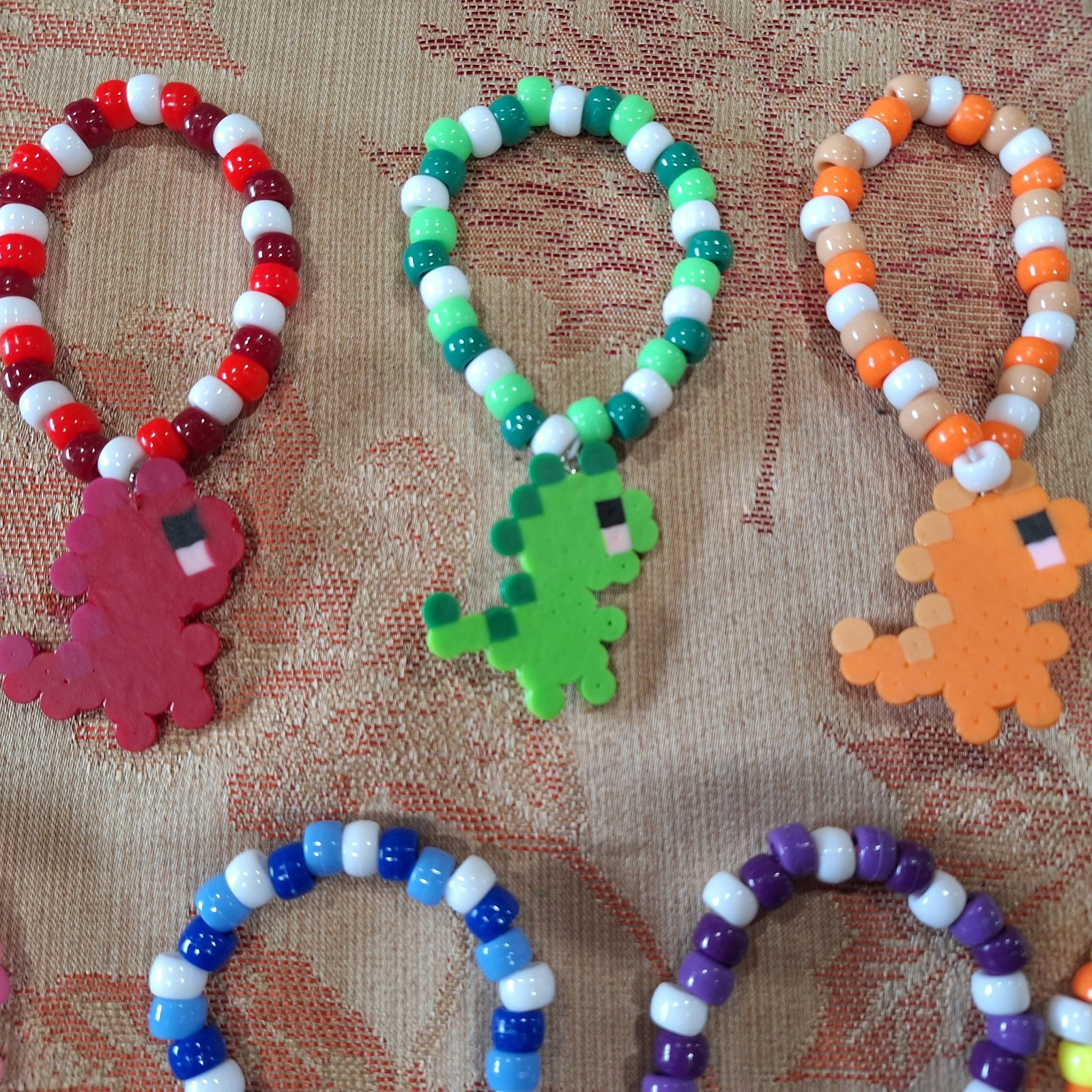 KANDI Lot of 7 Dinosaur Rainbow Bracelets Pony Beads - EDM- RAVE - PLUR- EDC