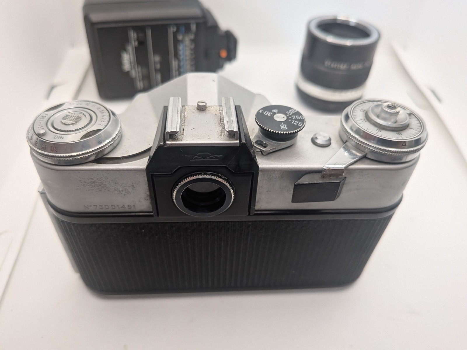 как выглядит Kalimar SR200 Zenit E Camera with Industar 50-2 50mm F3.5 W/ Flash Teleconverter фото