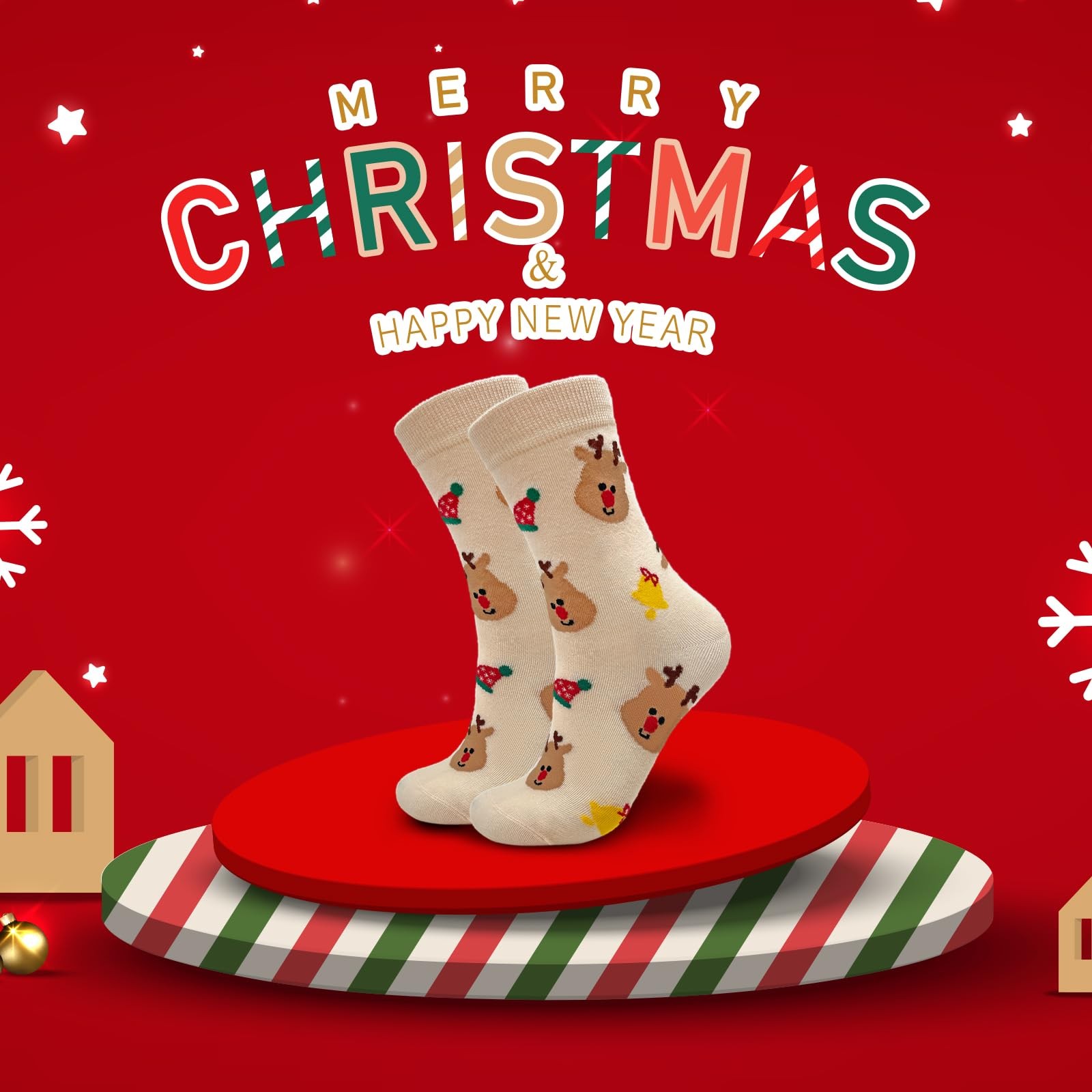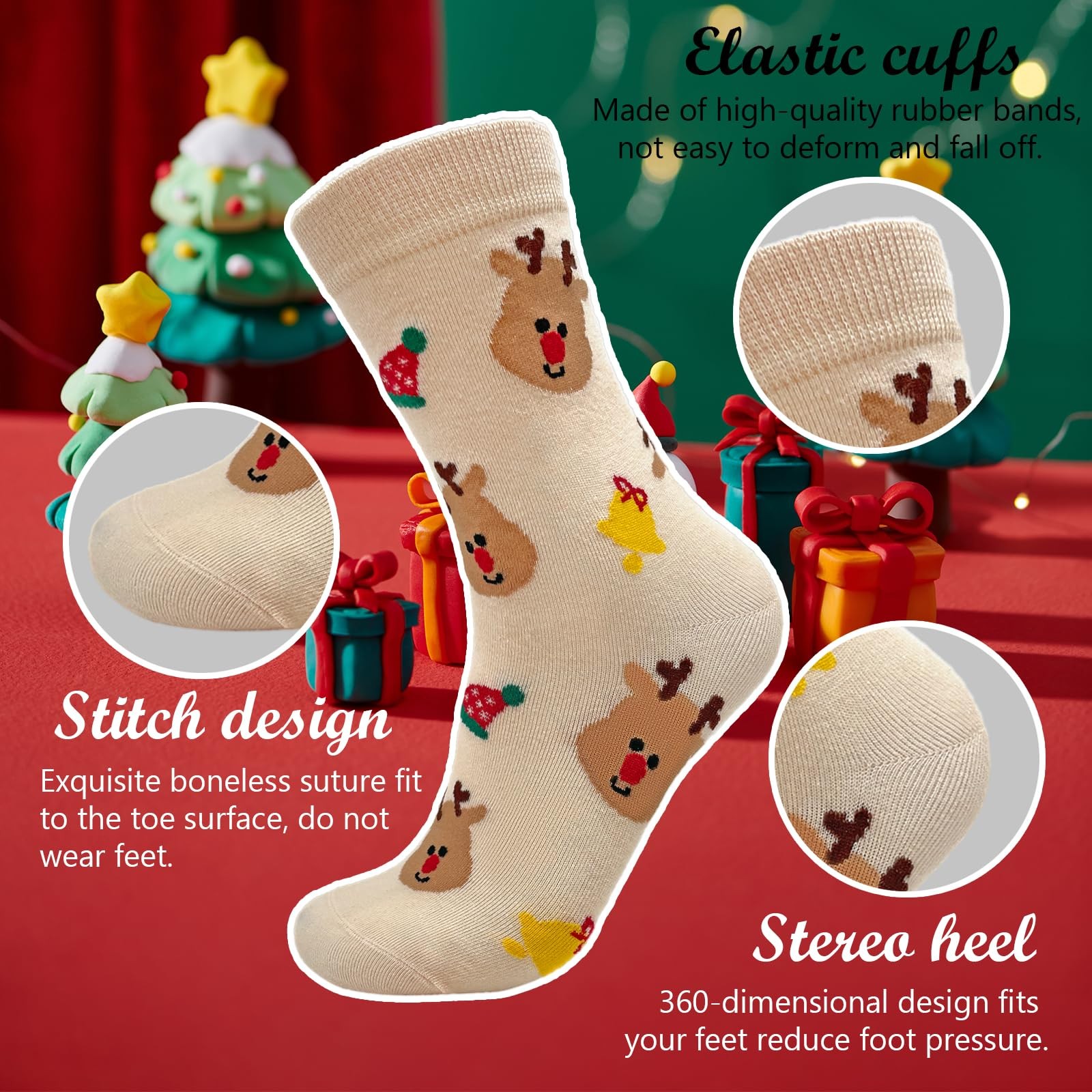 Rutuioy Cute Deer Beige Christmas Socks for Women, Fun Novelty One Size,
