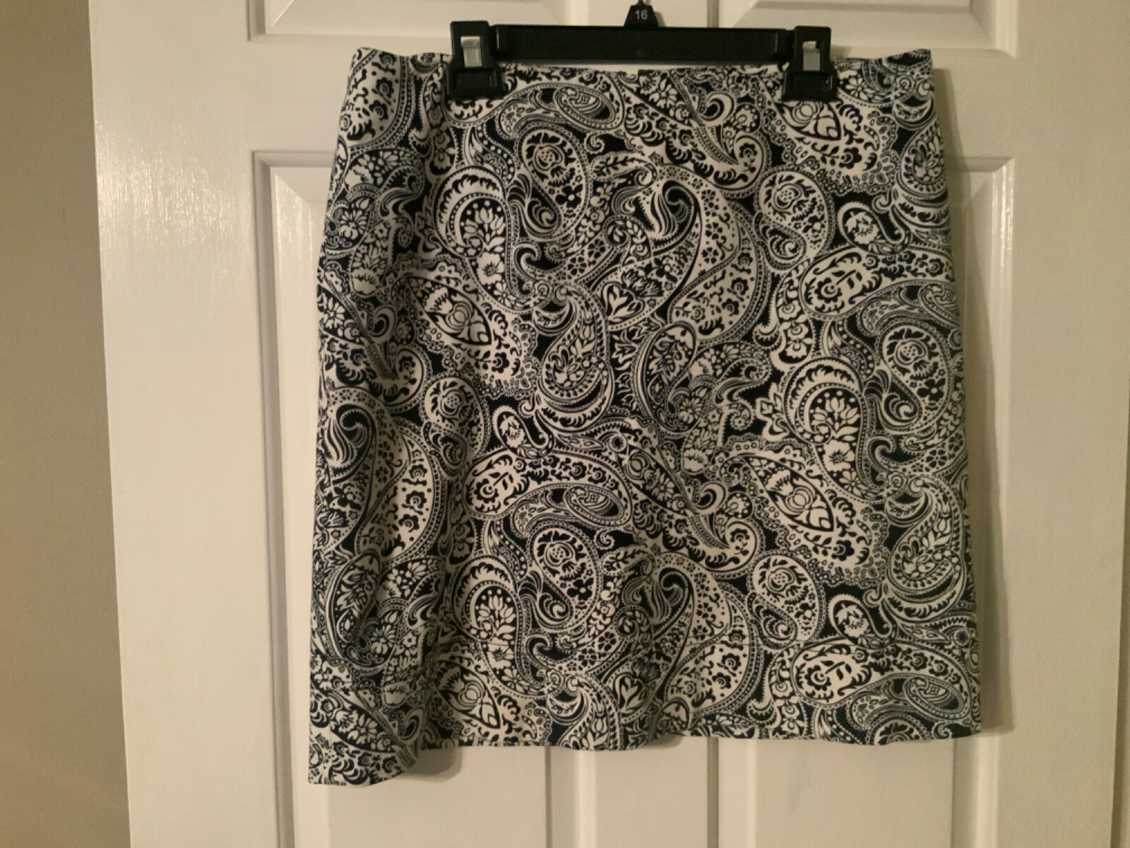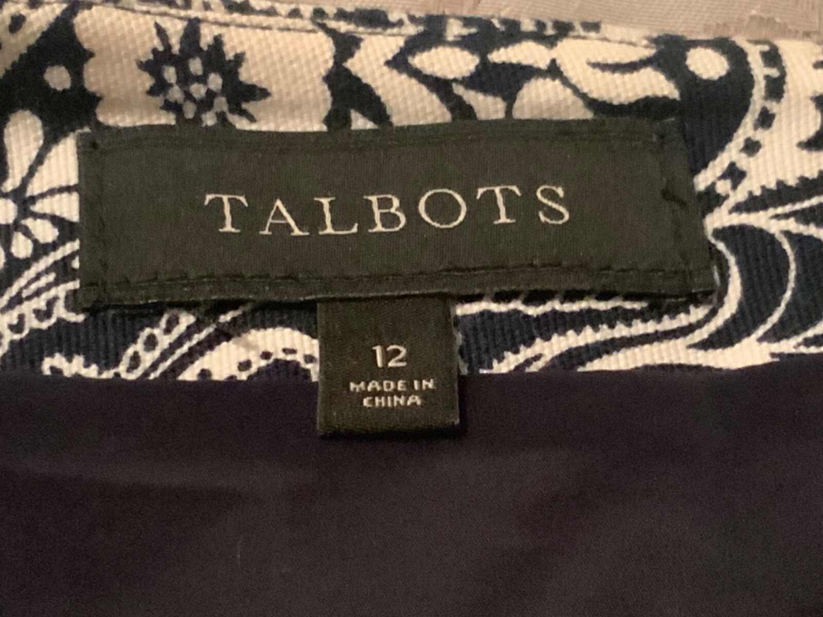 как выглядит Talbots Blue Paisley Cotton Spandex Lined A Line Size 12 Skirt фото