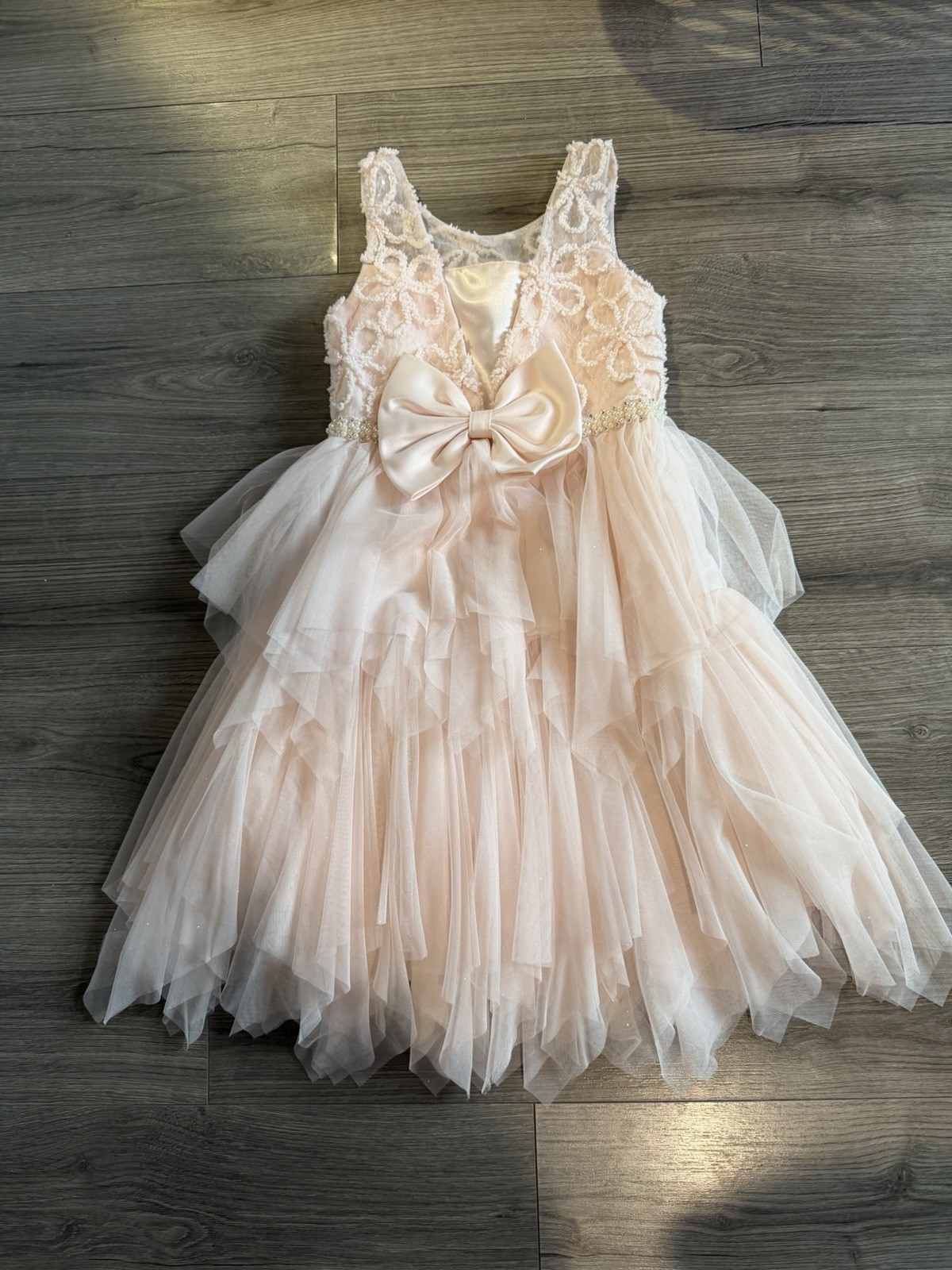 как выглядит American Princess Ivory Floral Lace Tulle Ball Gown Dress with Bow Size 8 фото