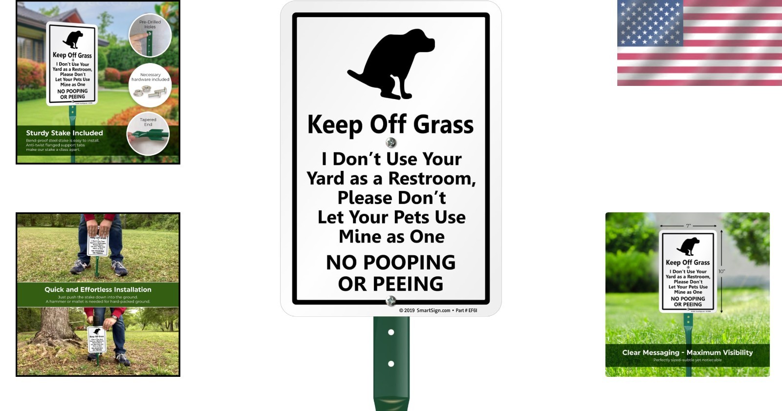 как выглядит USA-Made 10 x 7 Durable Lawn Sign - Funny Dog Poop Warning with 21 Stake фото
