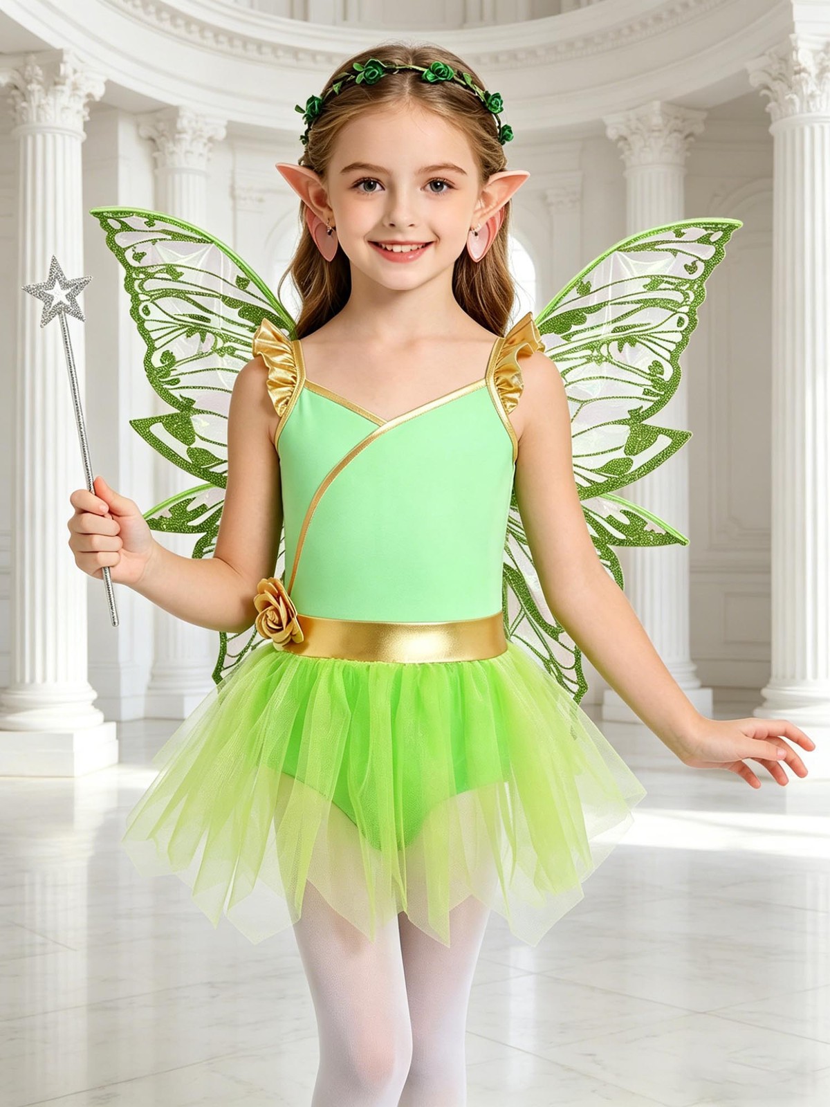 Girl's Cosplay Gifi Butterfly Leotard Outfits Show Elf Tutu Dress Gift Fairy