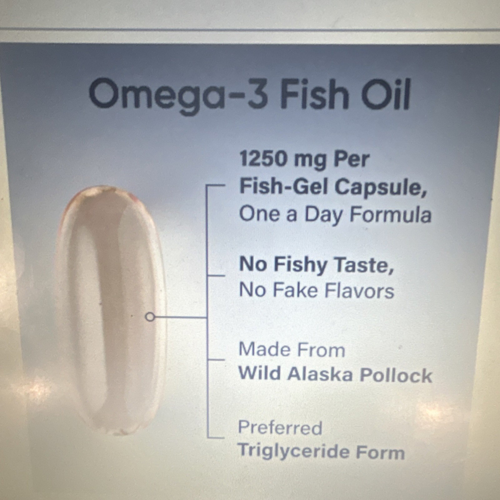 Ingredients: Wild Alaska Pollock Fish Oil Concentrate, Fish Gelatin, Vegetable Glycerin, Purified Water, Tocopherols