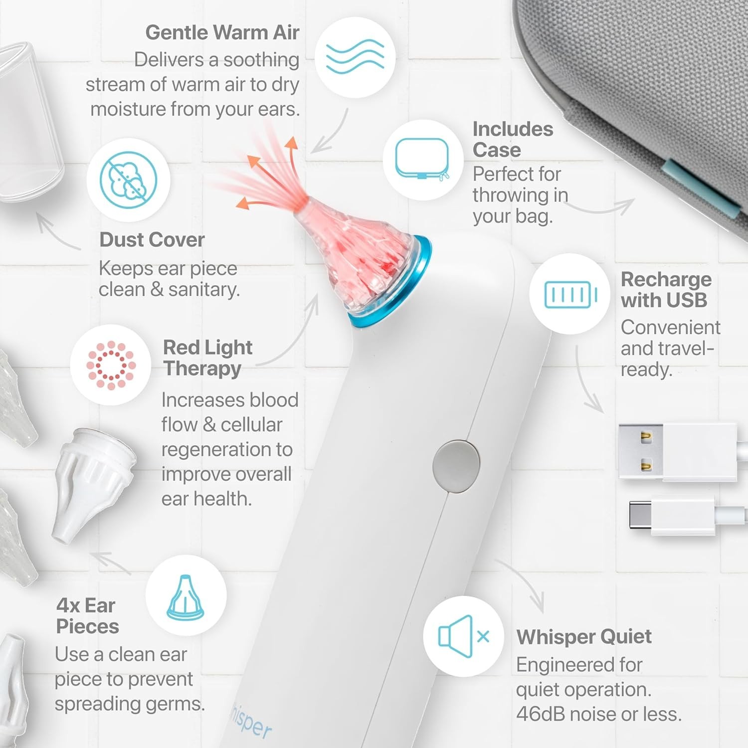 Rechargeable Portable Red Light Ear Water Drying Aid Device